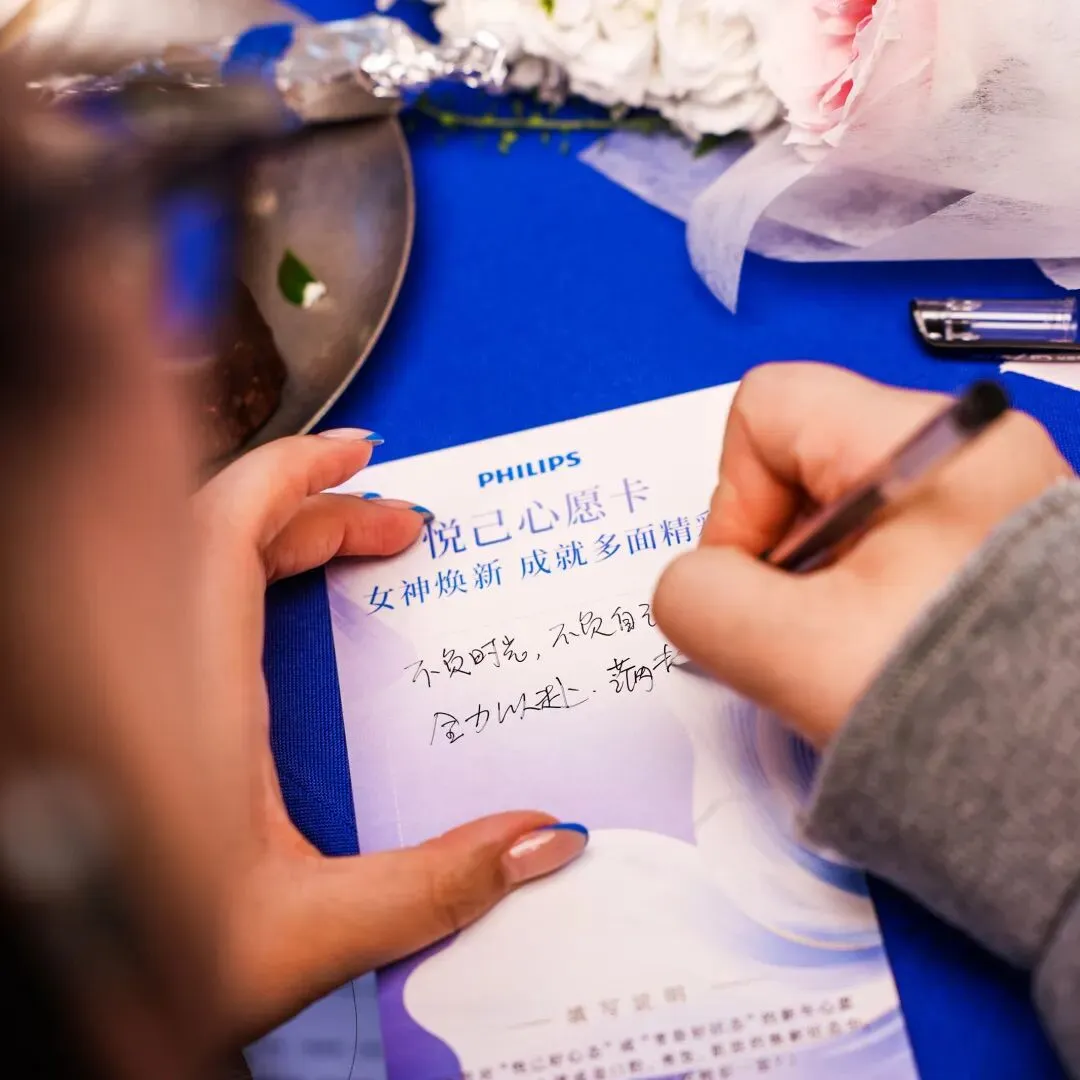 嘉宾们陆续签到,在「新年悦己愿望卡」上写下对自己的期许。