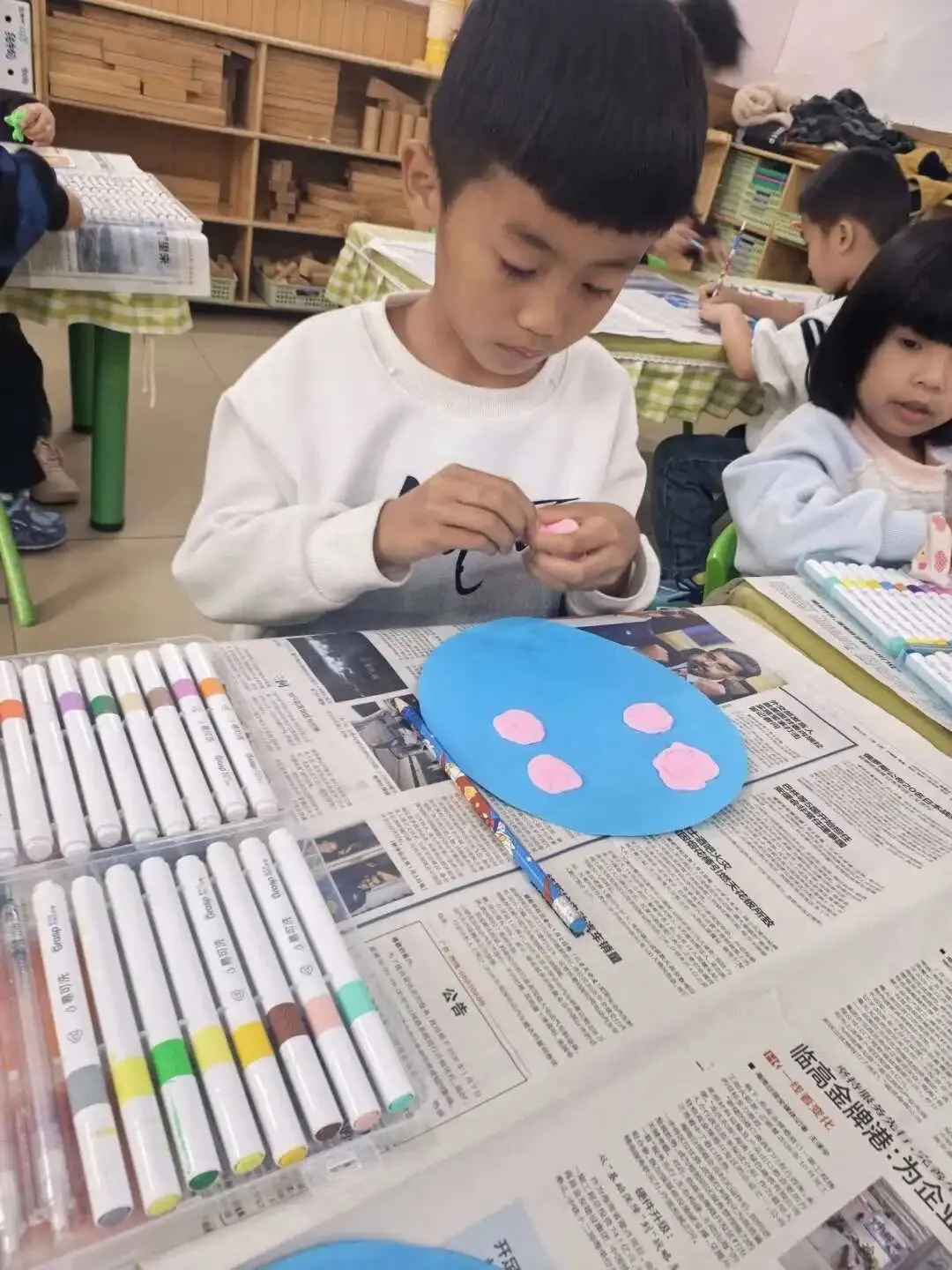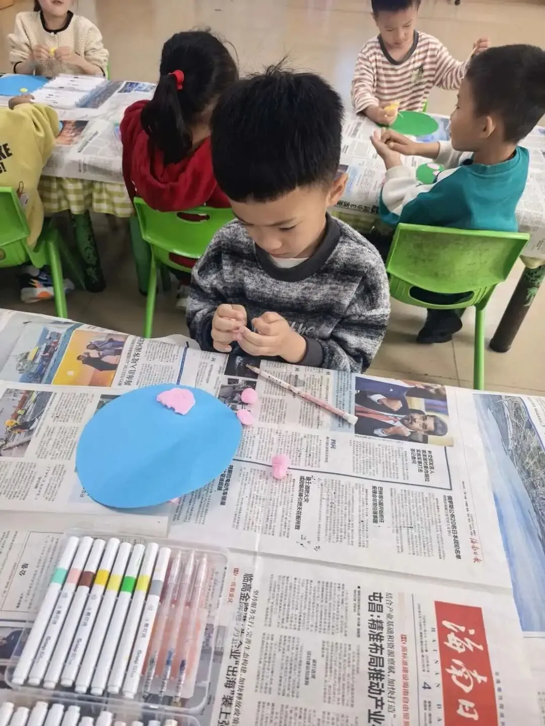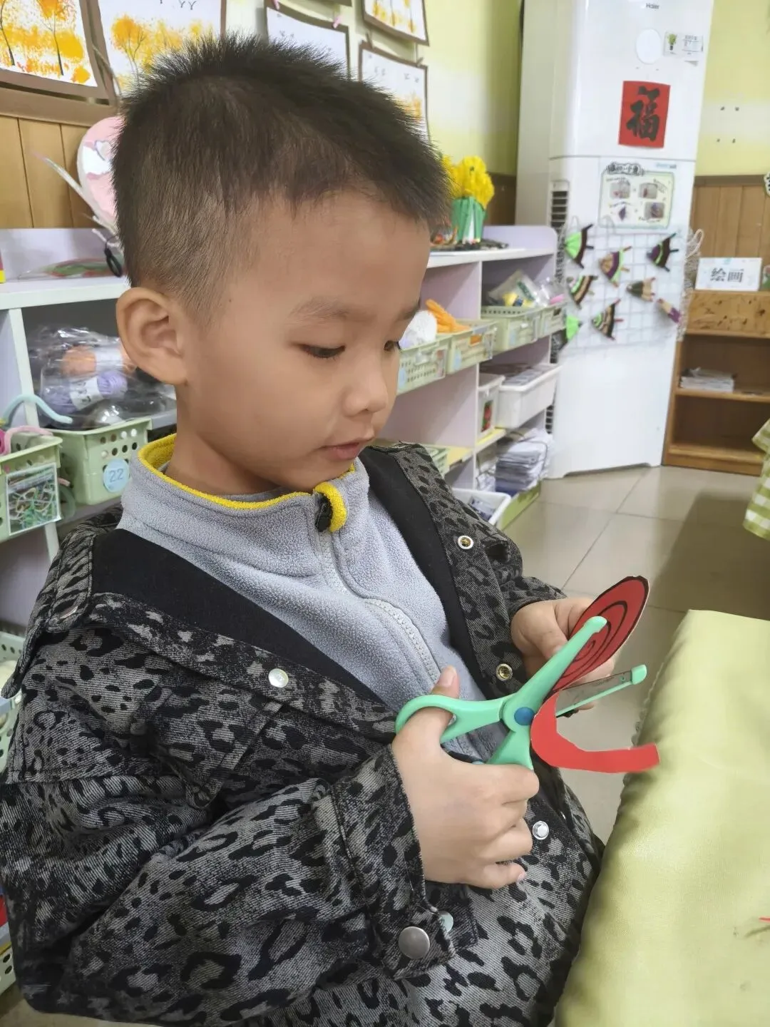 孩子们细心裁剪,精心粘贴,用心制作——用最真诚的心,做感恩的礼物。