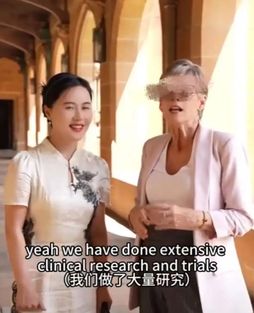 一名外籍女演员在视频中扮演悉尼大学教授。受访者供图