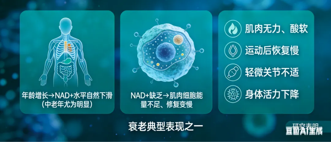 NAD+缺乏的身体信号不是凭空出现的,而是NAD+匮乏后,细胞功能衰退的直接外在表现: