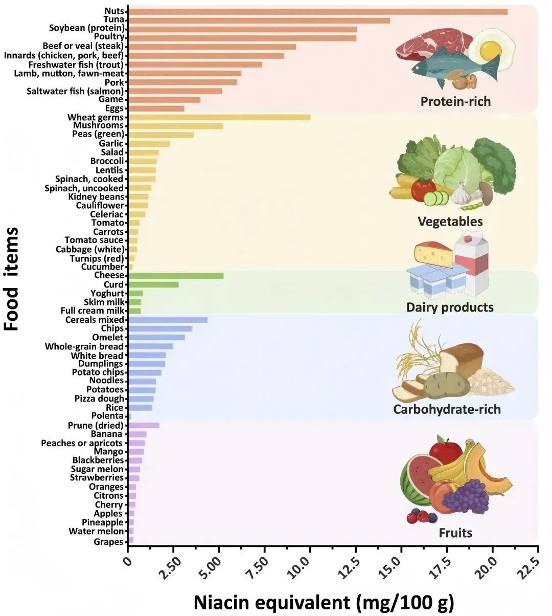 图 1. 按类别对食物及其烟酸当量营养价值进行分类