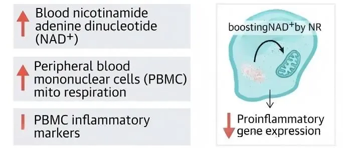 • 缓解认知衰退:口服NR可提高神经元来源外泌体NAD+水平,降低神经退行性病理标志物。在帕金森病(NADPARK研究)和轻度认知障碍的初步试验中,NAD+前体安全且显示出改善神经代谢的潜力。