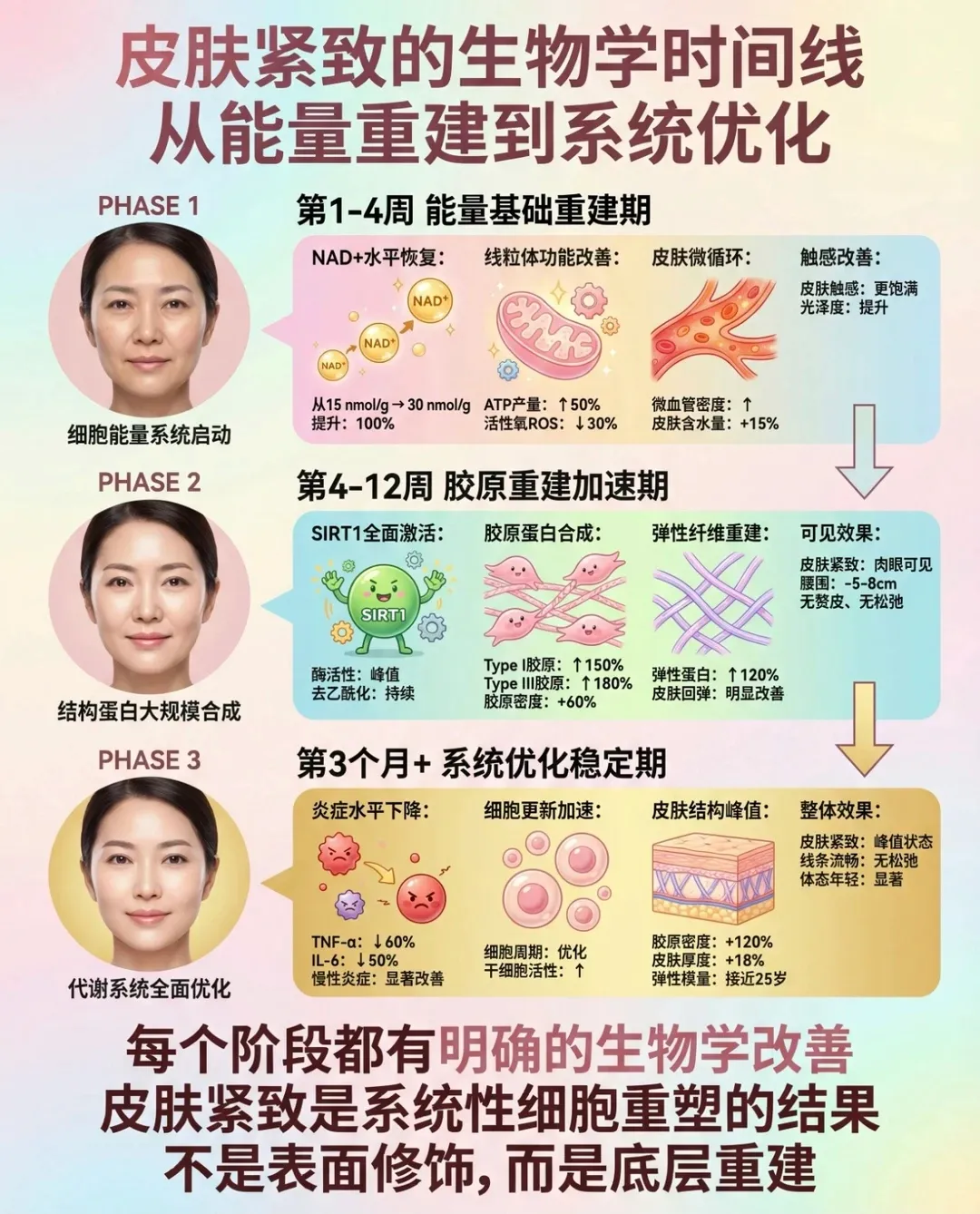 研究指出,NAD+是激活长寿蛋白、修复皮肤损伤的关键。缺乏后皮肤细胞氧化应激加剧,胶原蛋白快速流失,出现暗沉、松弛、细纹增多,皮肤屏障脆弱、修复变慢,再贵的护肤品也难以见效。