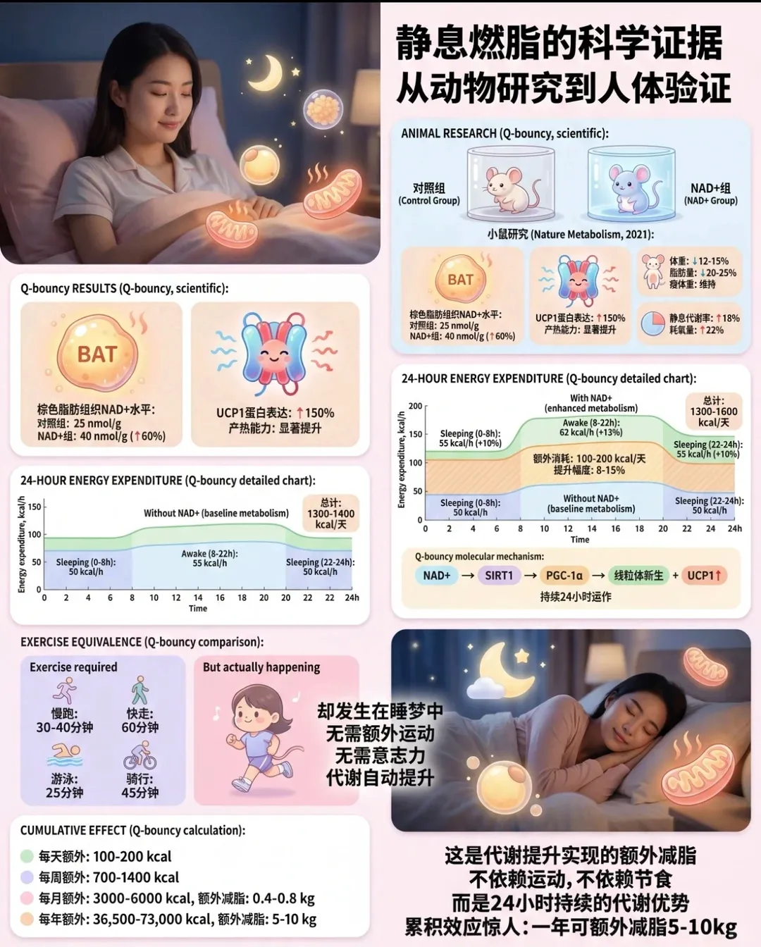 临床研究证实,NAD+直接调控人体生物钟相关基因(CLOCK、BMAL1),维持正常昼夜节律。NAD+水平不足,会彻底打乱睡眠节律,表现为入睡困难、夜间频繁醒、深度睡眠时间大幅缩短,明明睡了很久,醒来依旧昏沉乏力,长期下去形成“熬夜→缺NAD+→睡更差”的恶性循环。