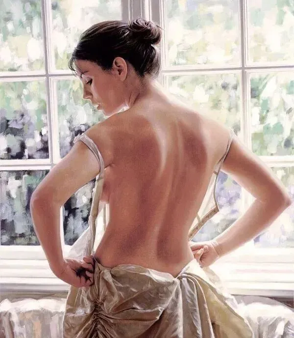 俄罗斯画家谢尔盖·马什尼科夫对背部的描绘,可谓是精益求精!如这幅画中的背部是沐浴在光线之中的,并折射到了墙壁上,渲染得更加有血有肉有温度!