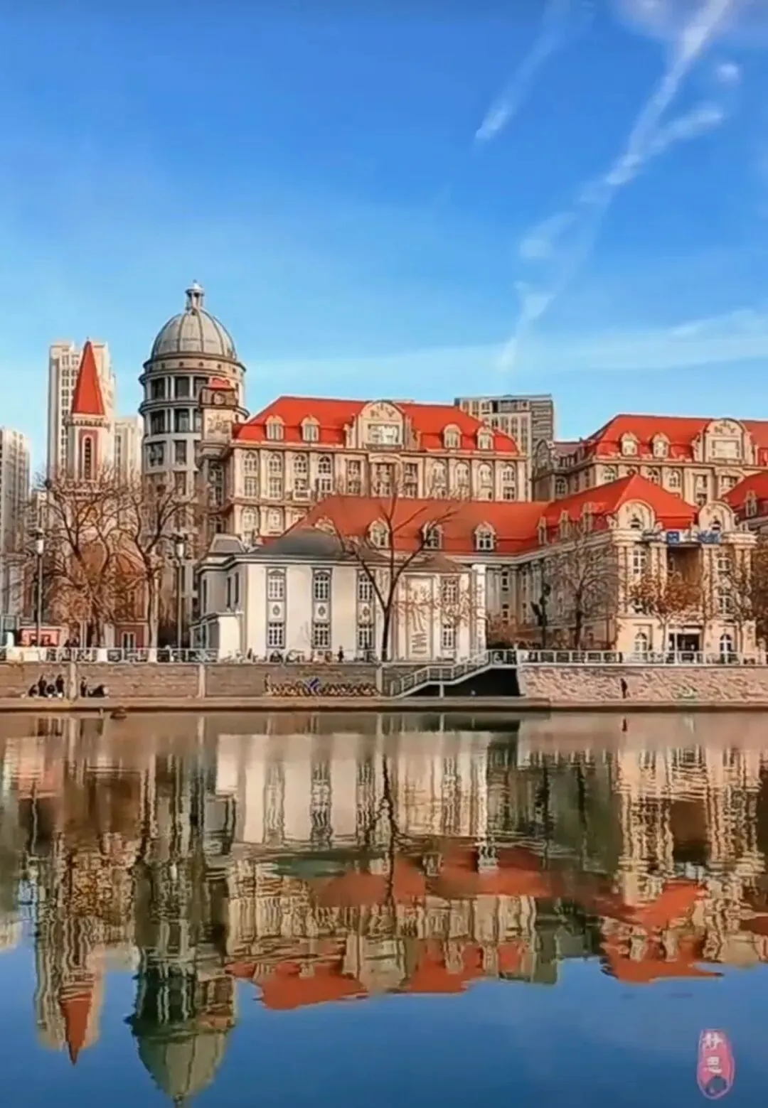 路线无论乘坐飞机或是火车(天津站),都直接在站内乘坐地铁2号线,建国道站B口出,左转沿建国道两个红绿灯路口欧式建筑即到。距离机场10站地,距离天津站1站地。
