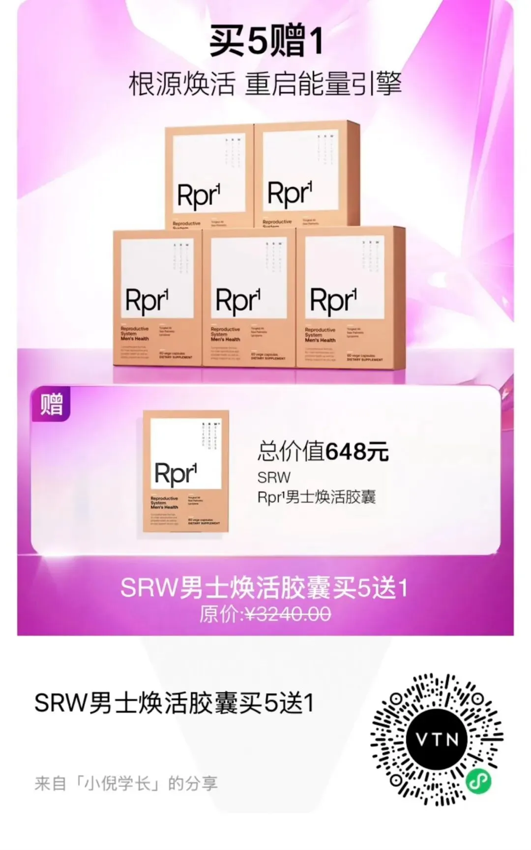 当前位置:首页>美女资讯>VTN3.8女神节-【买5送1】SRW Rpr¹男士焕活胶囊买5送1
