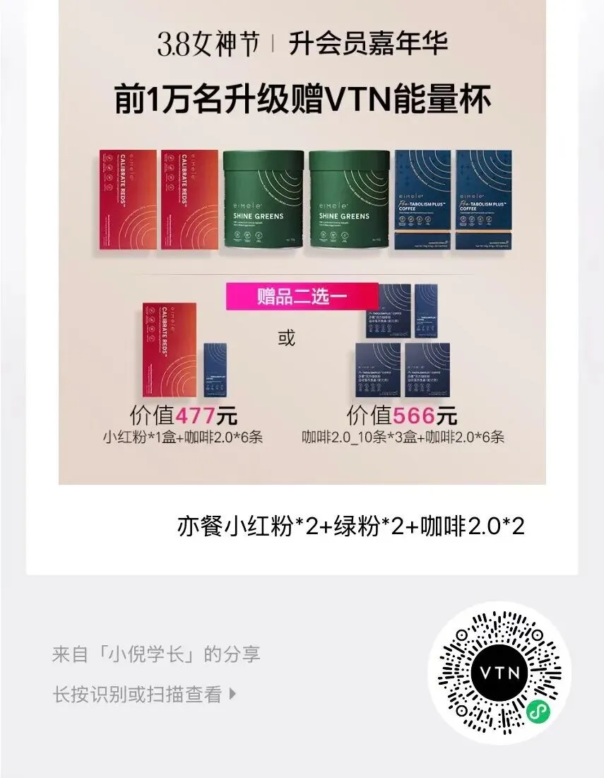 当前位置:首页>美女资讯>VTN3.8女神节-亦餐小红粉*2+绿粉*2+咖啡2.0*2 赠小红粉正装1盒+咖啡2.0*6条或咖啡2.0*体验装30条+咖啡2.0*6条