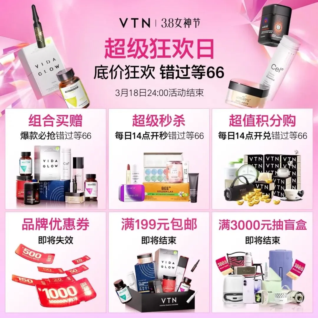 VTN |3.8女神节-超级狂欢日,3月16~18日,每天14:00秒杀,疯狂底价,错过等66,3月18日24:00活动结束~