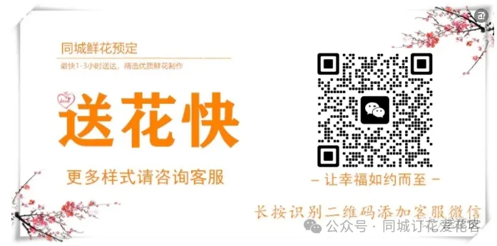 长按下方微信二维码,添加花店客服一对一咨询预订,优先配送