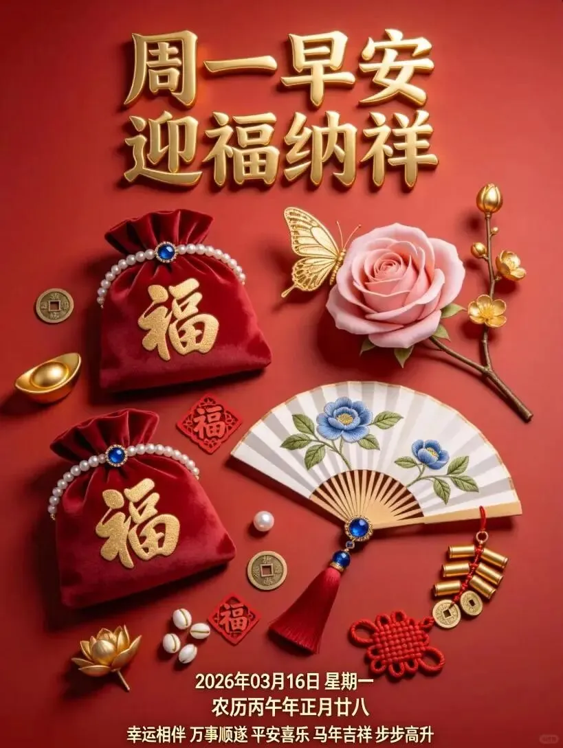 1. ☀️早安!今天是2026年3月16日,崭新的周一。周末的慵懒悄悄收起,新的一周正式启程。不必焦虑,不必慌张,把心态放平,把脚步放慢,认真对待工作,温柔对待生活。愿你一周顺顺利利,事事有回应,件件有着落,平安喜乐,心情常晴朗。