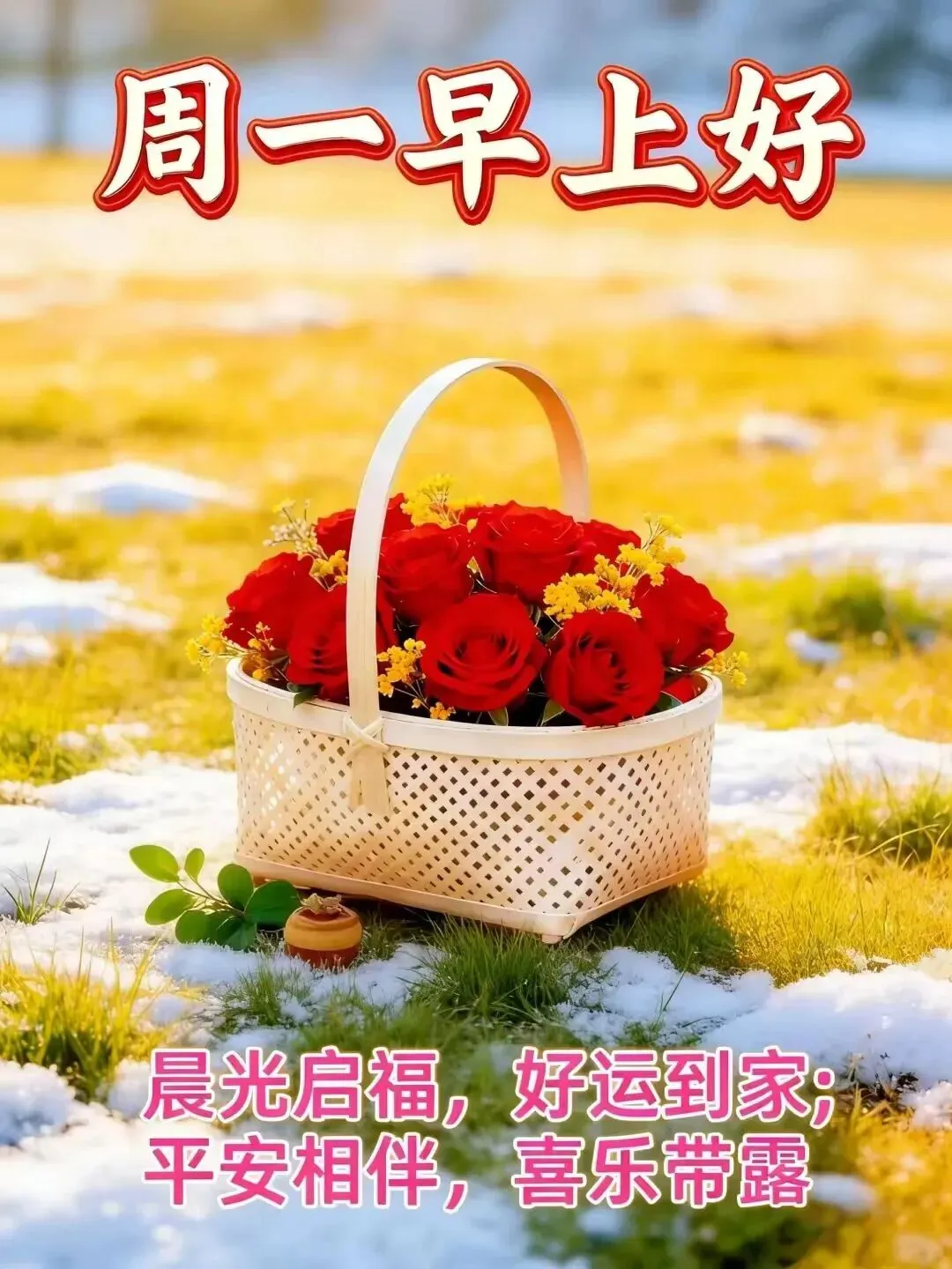 新的一周,精神饱满,打个招呼,事事圆满,相互关心,嘘寒问暖,真诚祝福,健康平安,福杯满溢,好运连连!早上好!