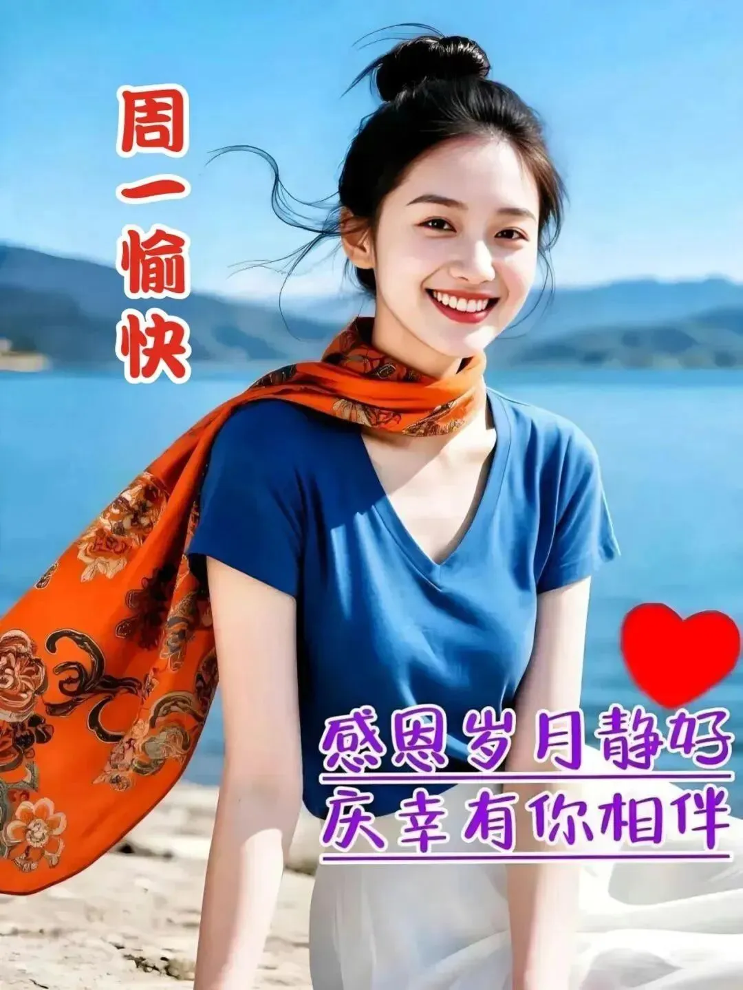一句简单的问候,一声真心的祝福,温暖别人,快乐自己,愿我们每一天都阳光灿烂,笑口常开,吉祥安康,周一早上好!