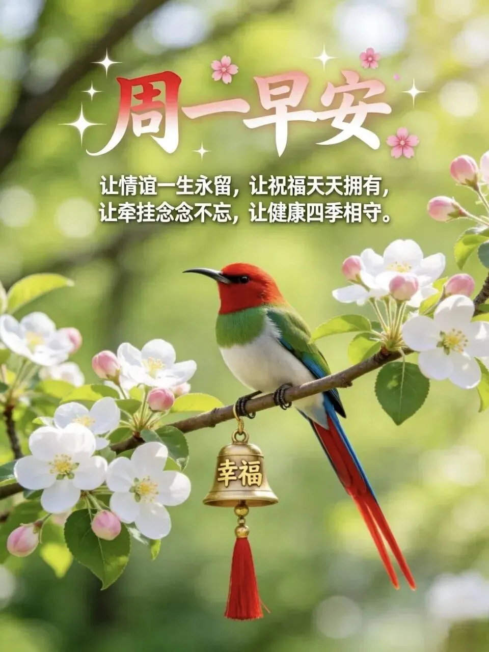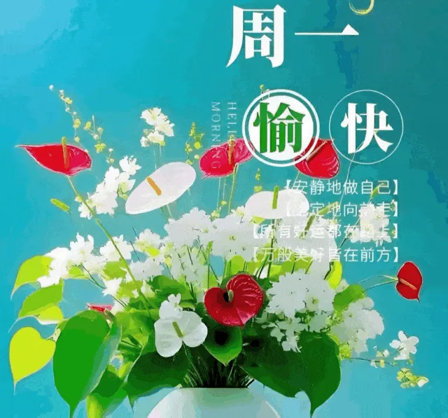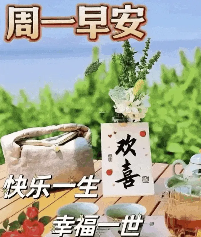 10. 早安☀️!周一到,祝福到🍀,愿你周一心情美如画🎨,事业如日中天☀️,生活甜蜜如蜜🍯,烦恼一扫而光👋,快乐无处不在😄,一周都有好福气❤️!