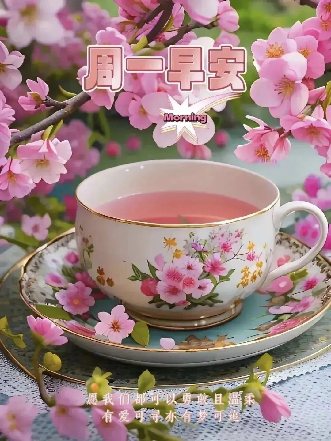 7. 周一早安☀️!新的一周,愿你眼里有光✨,心中有爱❤️,脚下有路🚶,生活有甜🍬,事业有成就📈,烦恼全消散👋,每天都能收获满满的幸福😄!