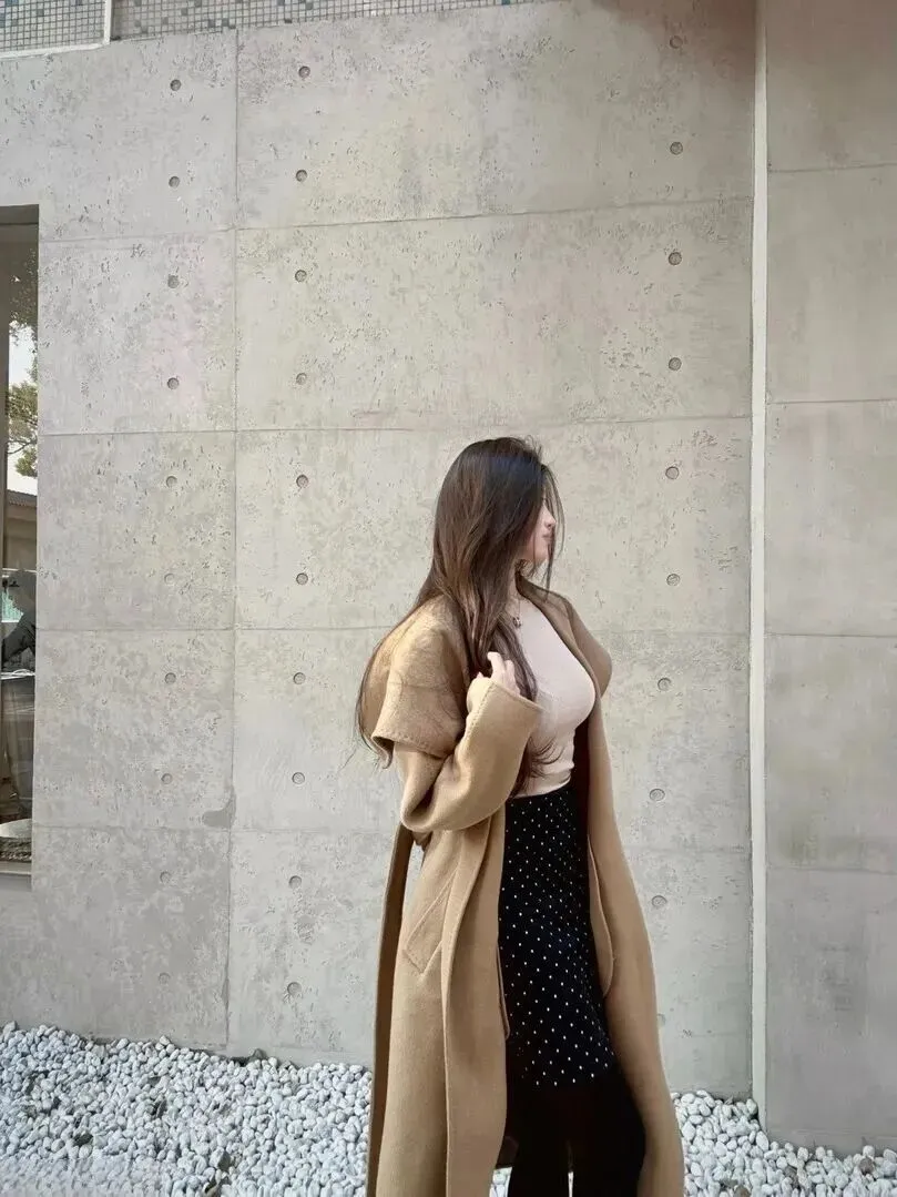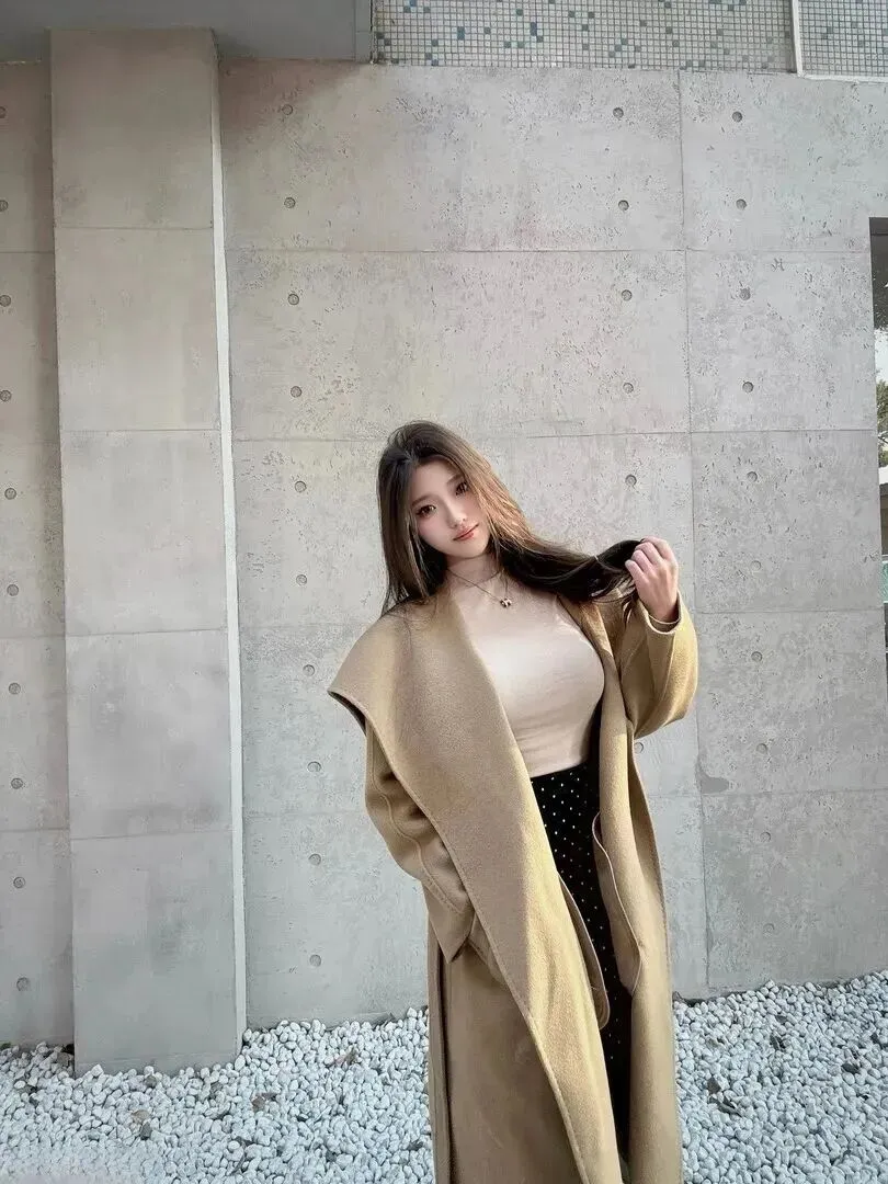 先看这衣服的版型。长至脚踝的设计真是选对了,穿上之后立马拉长比例,走路都带风。宽宽的翻领不会显得臃肿,反而多了一种层次。料子摸上去柔软、垂感好,即使穿得很严实也不会显得臃肿。
