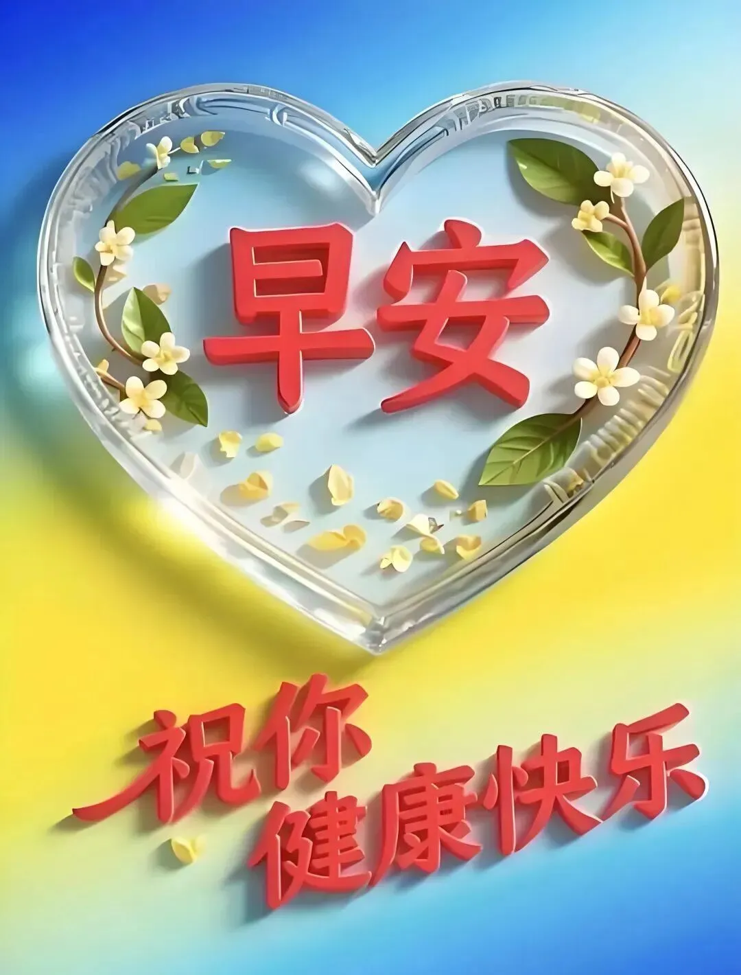 清晨问候一天喜,开心快乐无可比,一切皆是身外物,唯有健康属自己,心态平和幸福过,健康长寿跟着你。早上好!🌹❤️🍻☕️🌞🎉