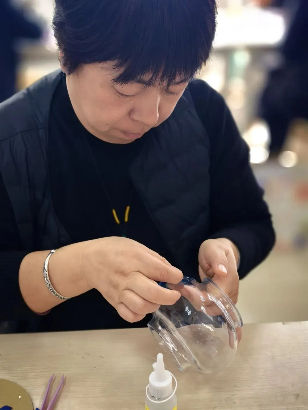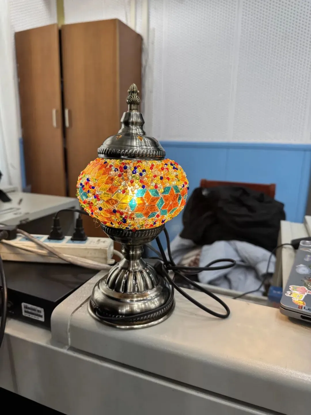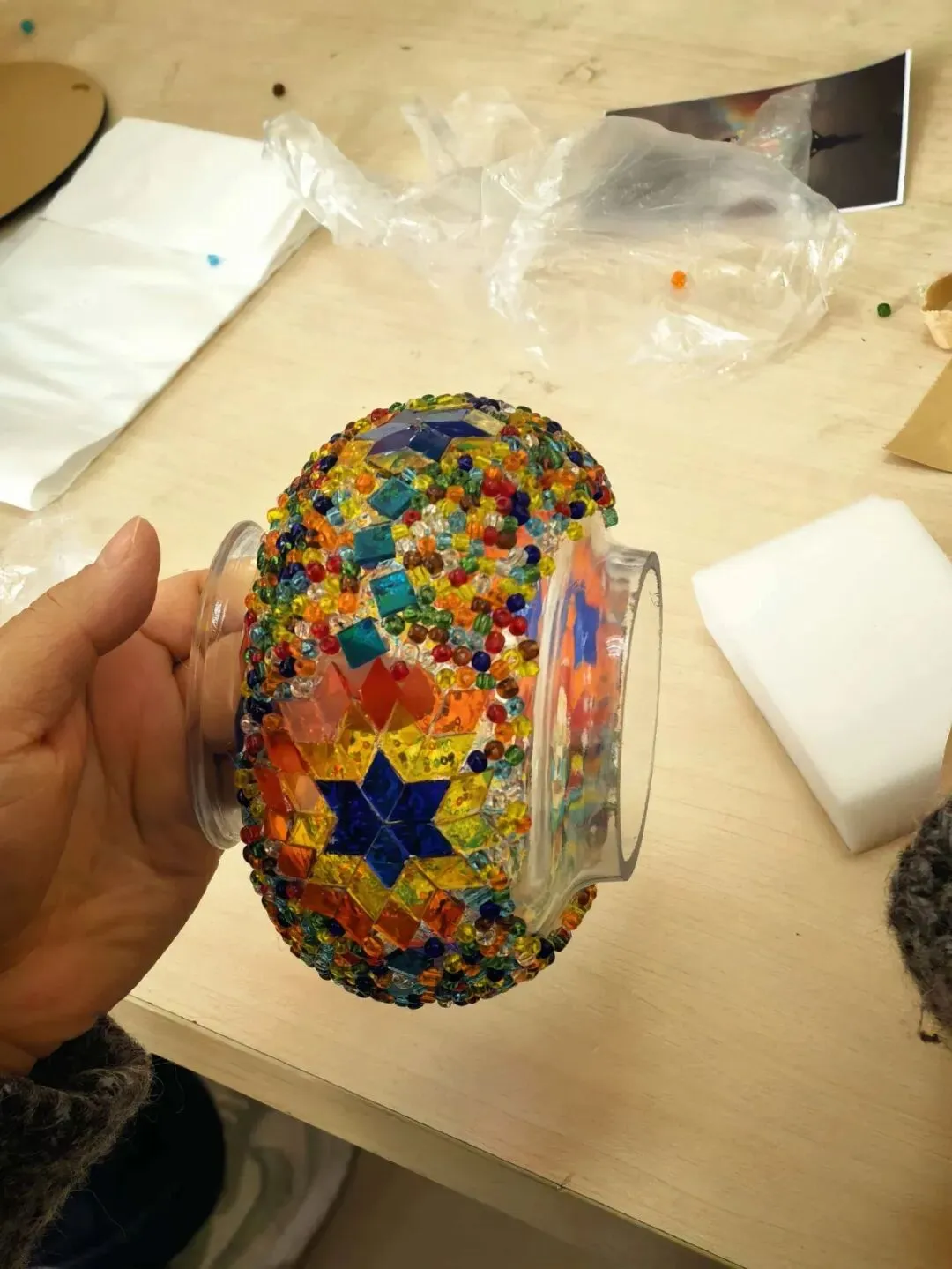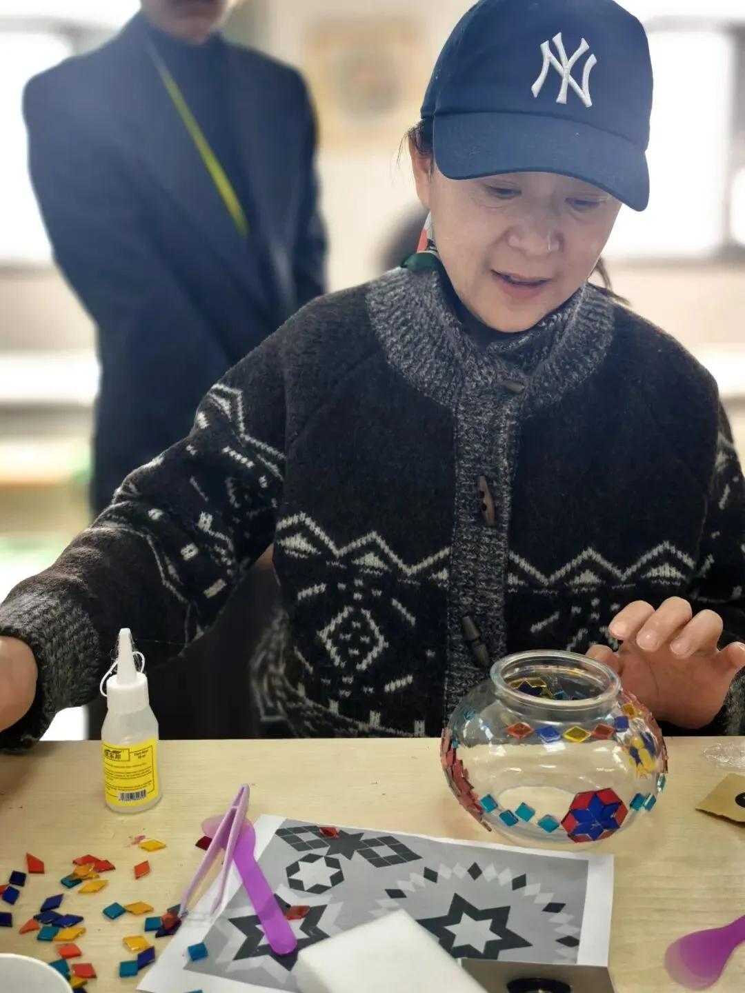 活动现场,温馨雅致。大家在老师的指导下,精心挑选琉璃、创意搭配色彩、细心组装拼接,将匠心与巧思融入每一个细节。从零散的组件到一盏盏光影温柔的琉璃台灯,指尖流转的是艺术之美,心中满溢的是治愈与欢喜。老师们相互交流、彼此协助,欢声笑语此起彼伏,在忙碌的教学工作之余,卸下疲惫、舒缓压力,收获了独属于自己的节日小确幸。