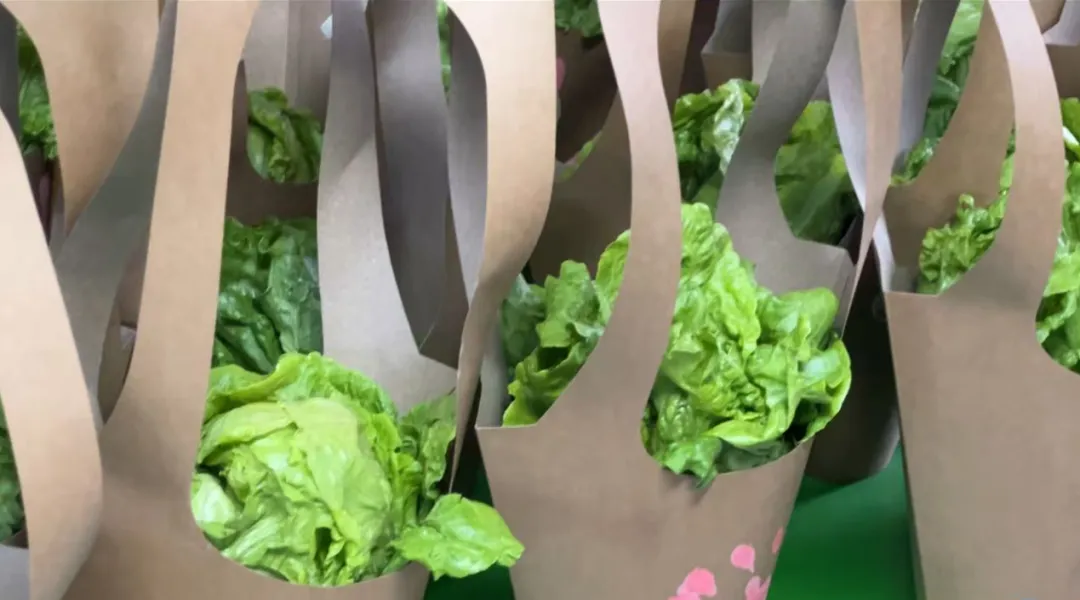 宝贝们认真地摆弄着每一片菜叶,眼神里满是专注。这一束束独一无二的生菜花,藏着最纯粹的童心,带着 “生财纳福” 的美好祝愿,是宝贝们送给女神们最特别的心意,每一片菜叶都承载着对身边女性满满的爱。