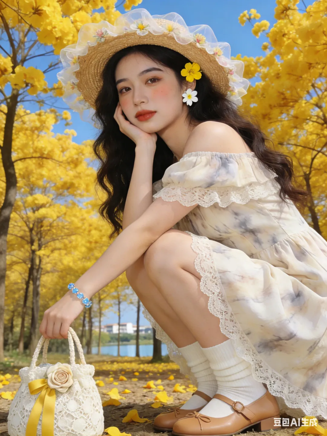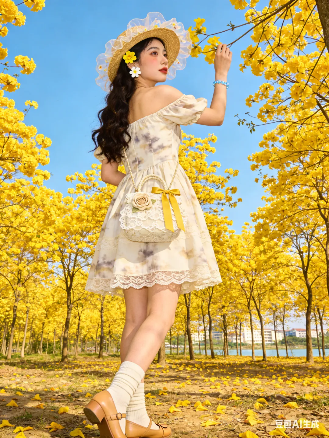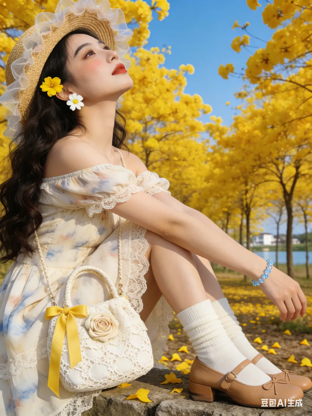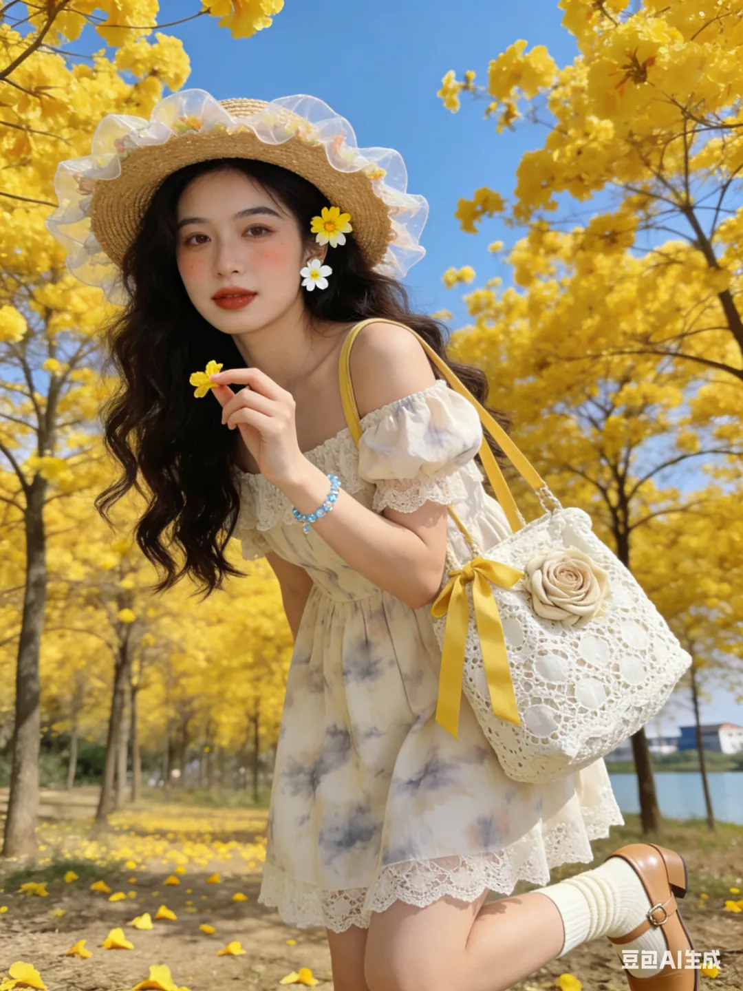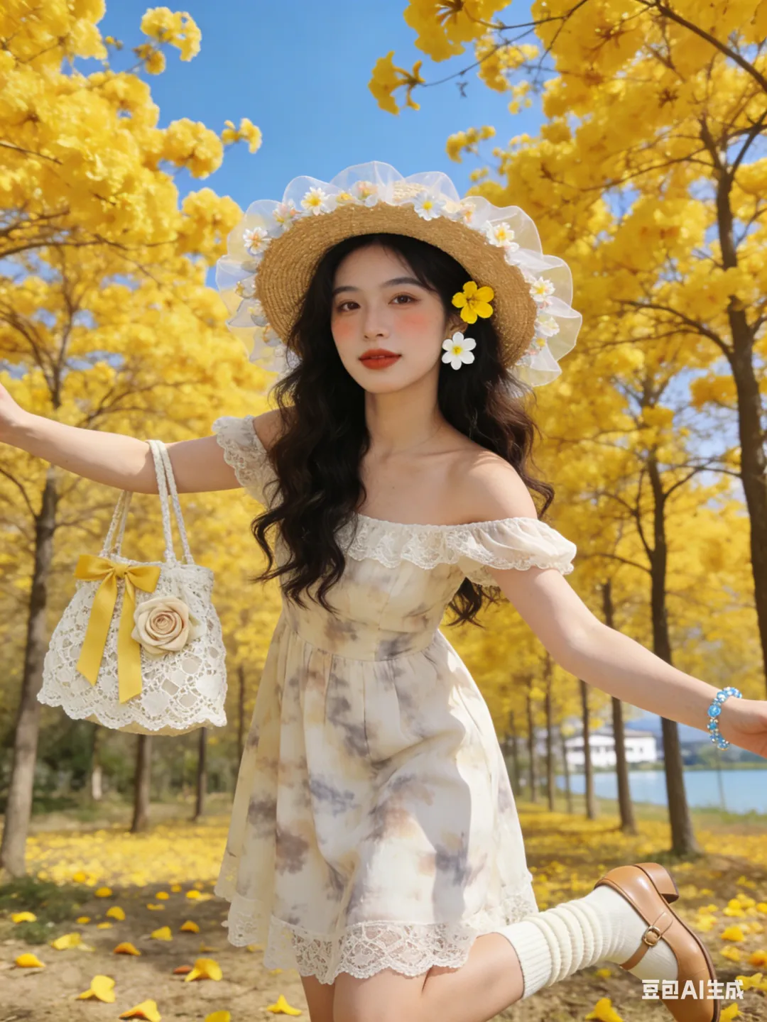 #黄花风铃木 #春日写真 #AI生成照片 #豆包AI #拍照姿势分享 #春日限定