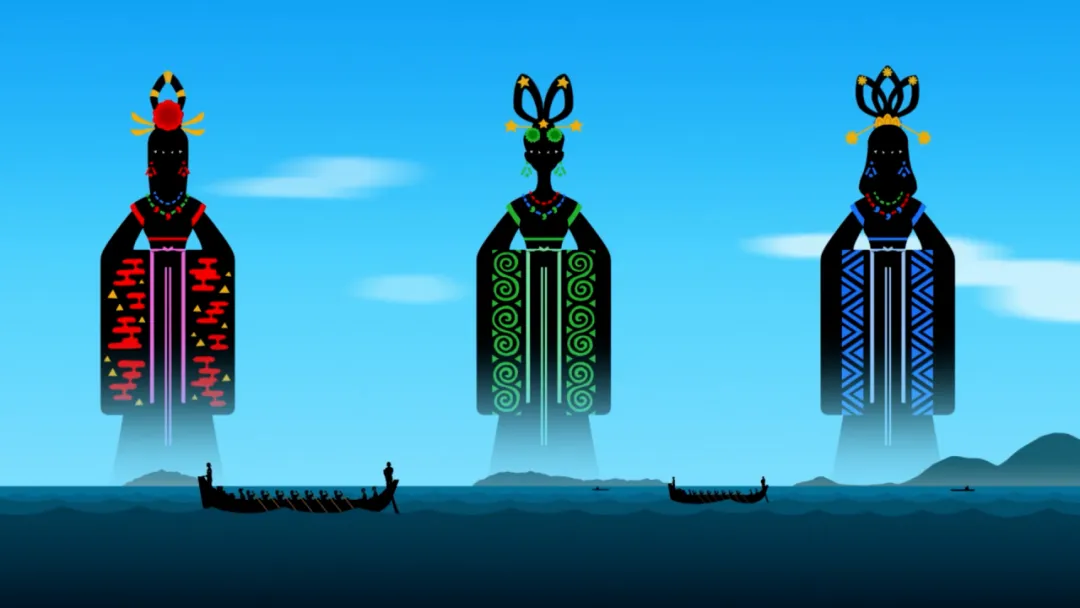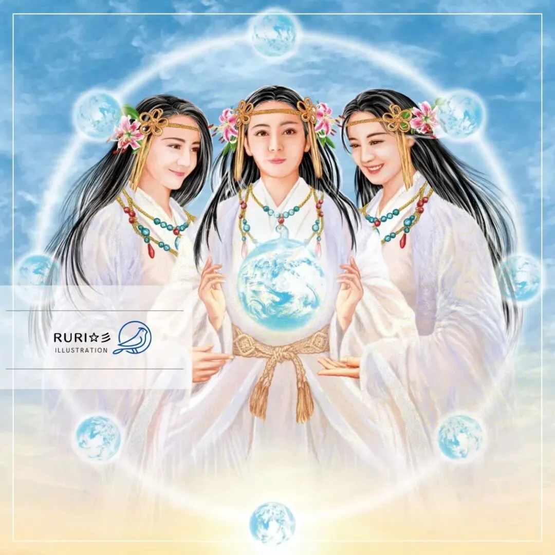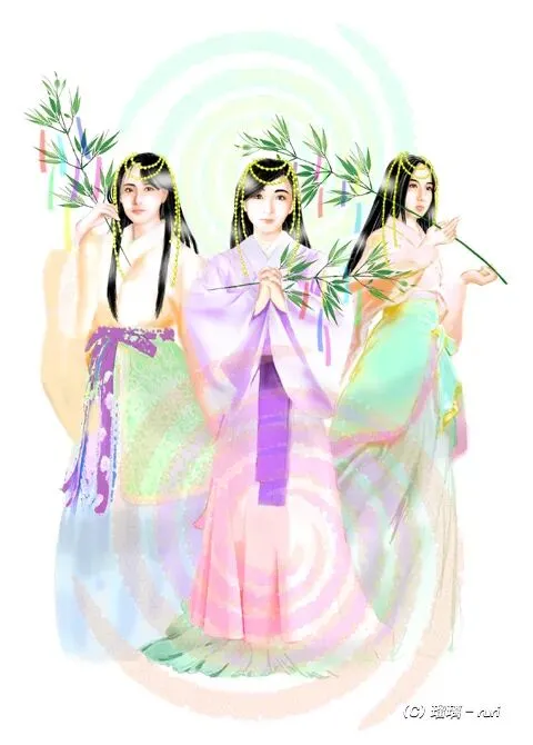 宗像三女神(Munakata-sanjojin)。这三位神明被认为是日本神话中的太阳女神、神道教最高神“天照大神”(Amaterasu)的女儿。此三神为玄界滩守护前往朝鲜半岛海路安全的神祇,自古以来即受到大和朝廷的重视。