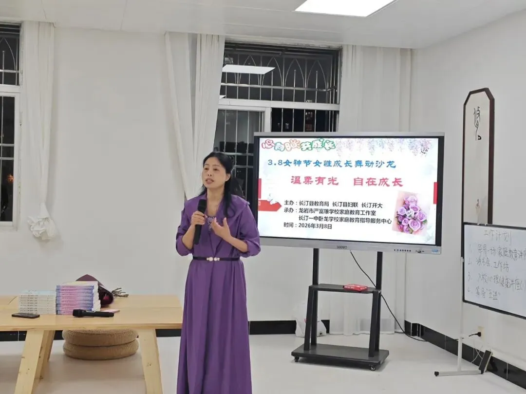 3月8日,“3.8”女神节女性成长舞动沙龙在长汀一中卧龙学校家庭教育指导服务中心温情启幕。本次活动由长汀县教育局、长汀县妇联、长汀开放大学联合主办,龙岩市严富雄学校家庭教育工作室承办,工作室成员、国家二级心理咨询师、舞动治疗师王海玉亲临现场带领,来自各行各业的女性同胞齐聚一堂,以舞动为媒介,开启了一场沉浸式的身心疗愈与自我成长之旅。