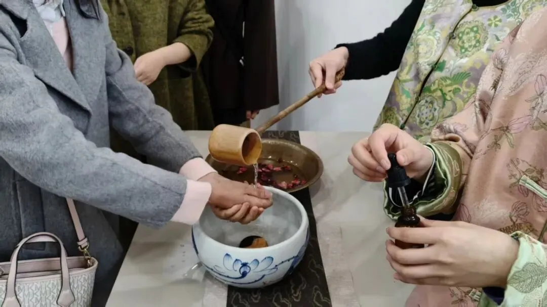一场庄重的净手仪式,为匠心之旅拉开了序幕。随后,手工香囊与艾草锤的制作环节,让大家沉浸式感受传统民俗的独特魅力。