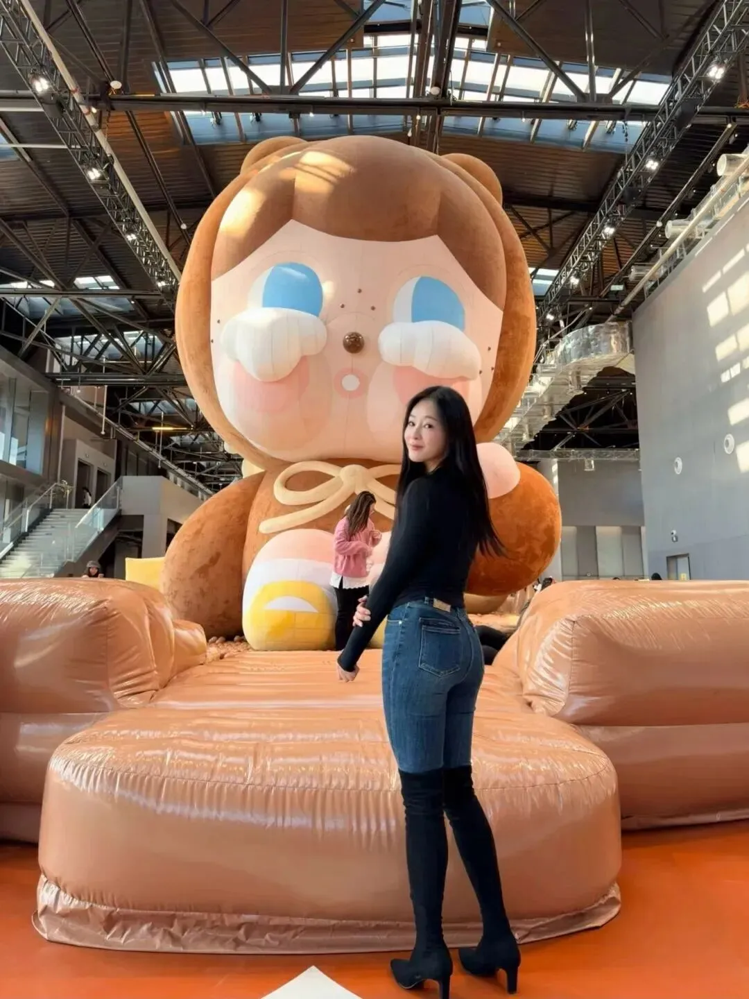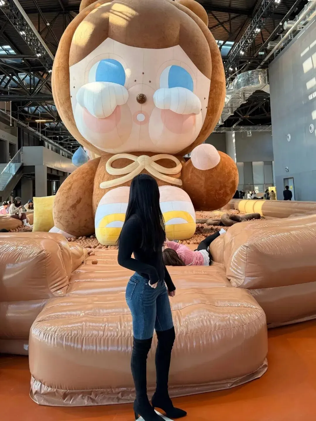 室内游乐场这个喧闹的地方里,她的穿着依然十分醒目。