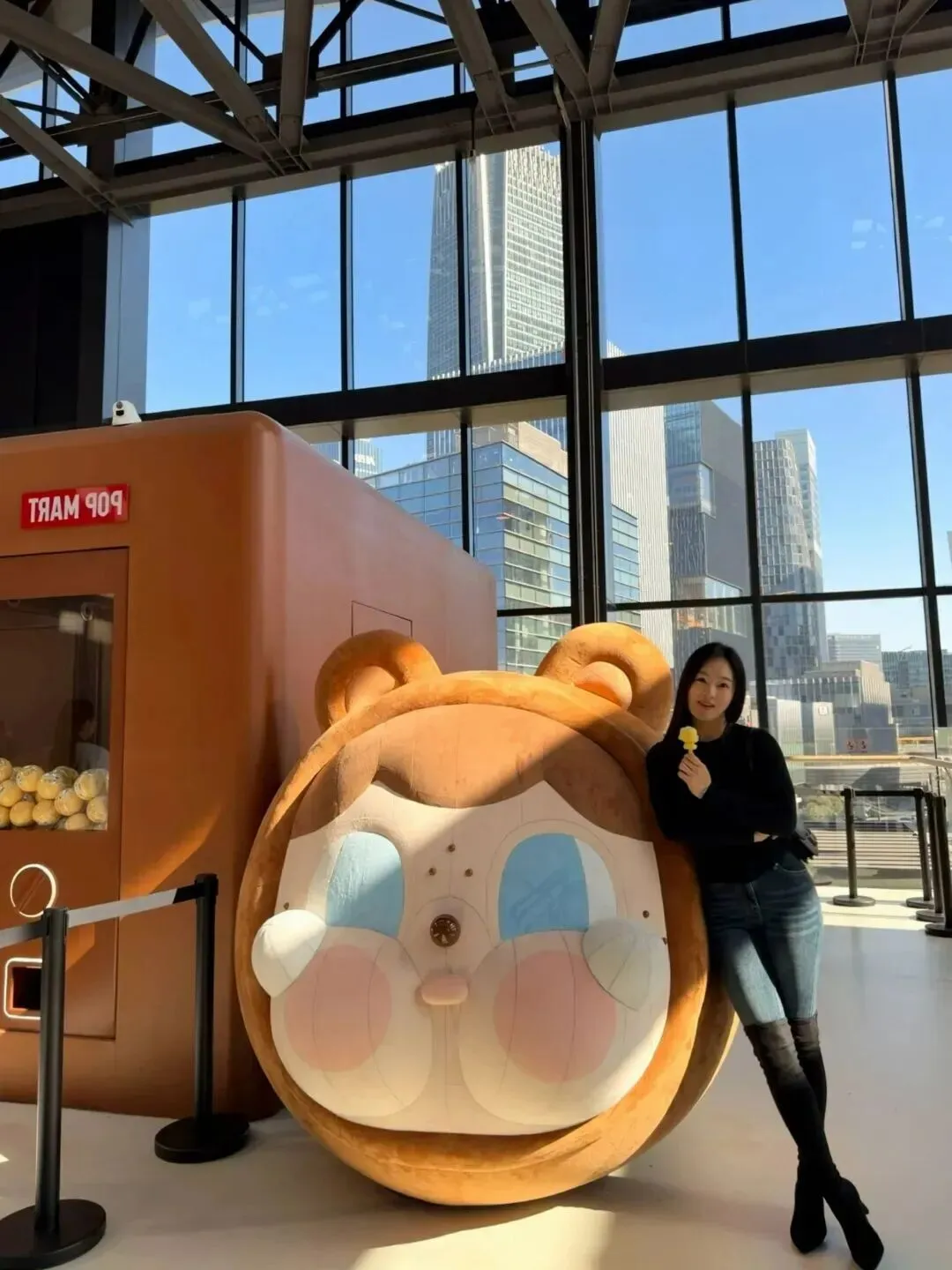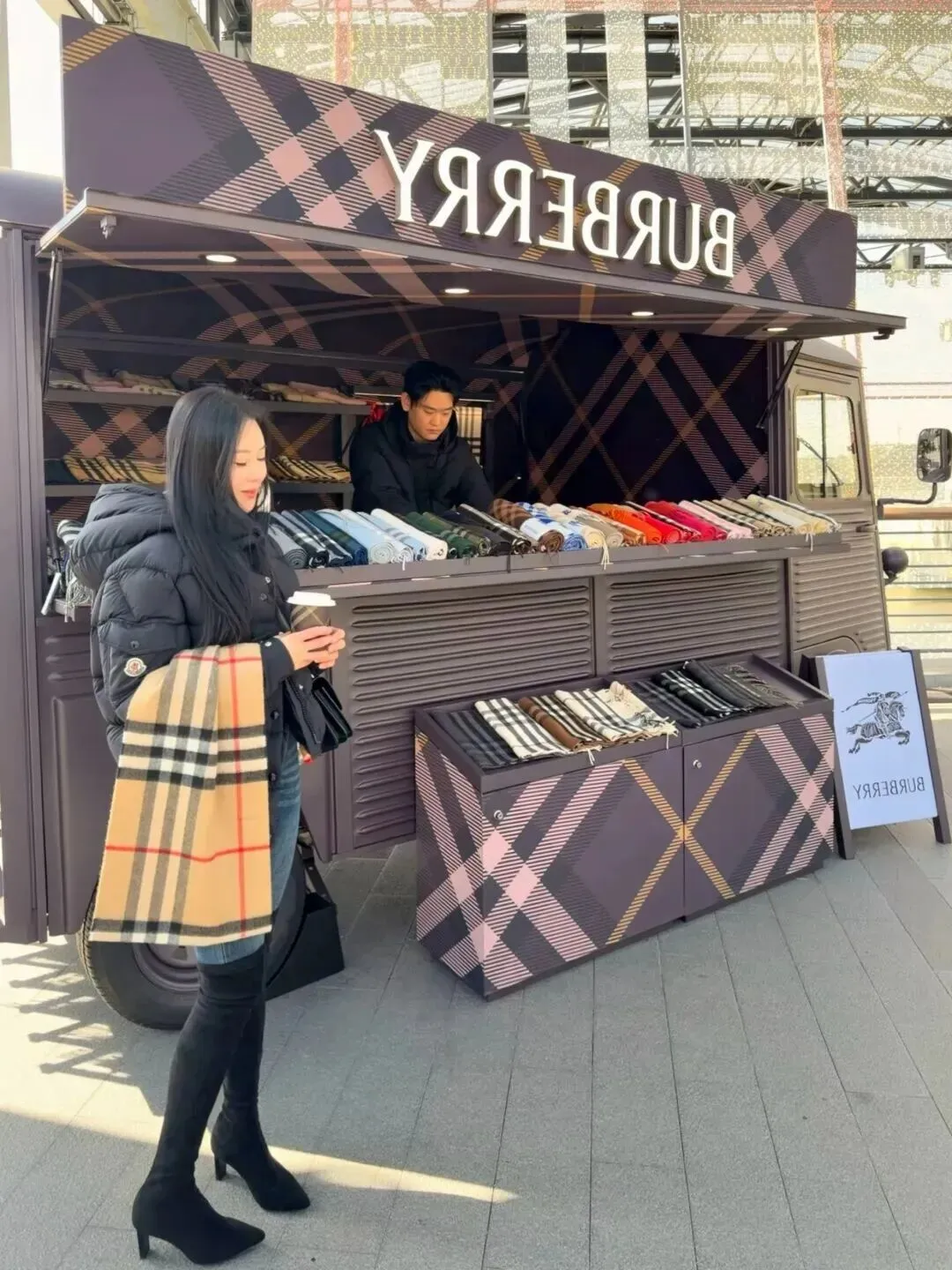 户外快闪展上,小姐姐的穿搭多了点趣味。