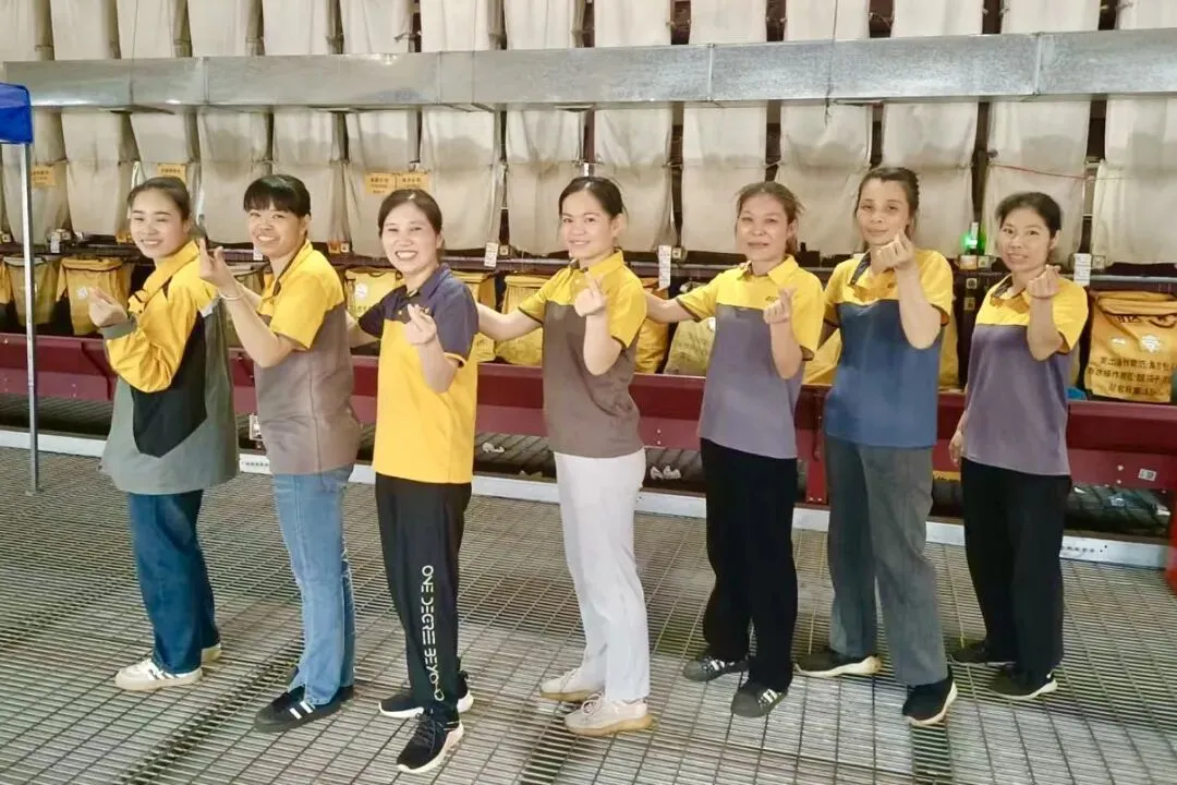 在自动化分拣线上,她目光如炬,手速如飞,精准识别着包裹的目的地。成千上万的包裹在她手中快速流转,效率与准确,是她送给节日物流的第一道保障。