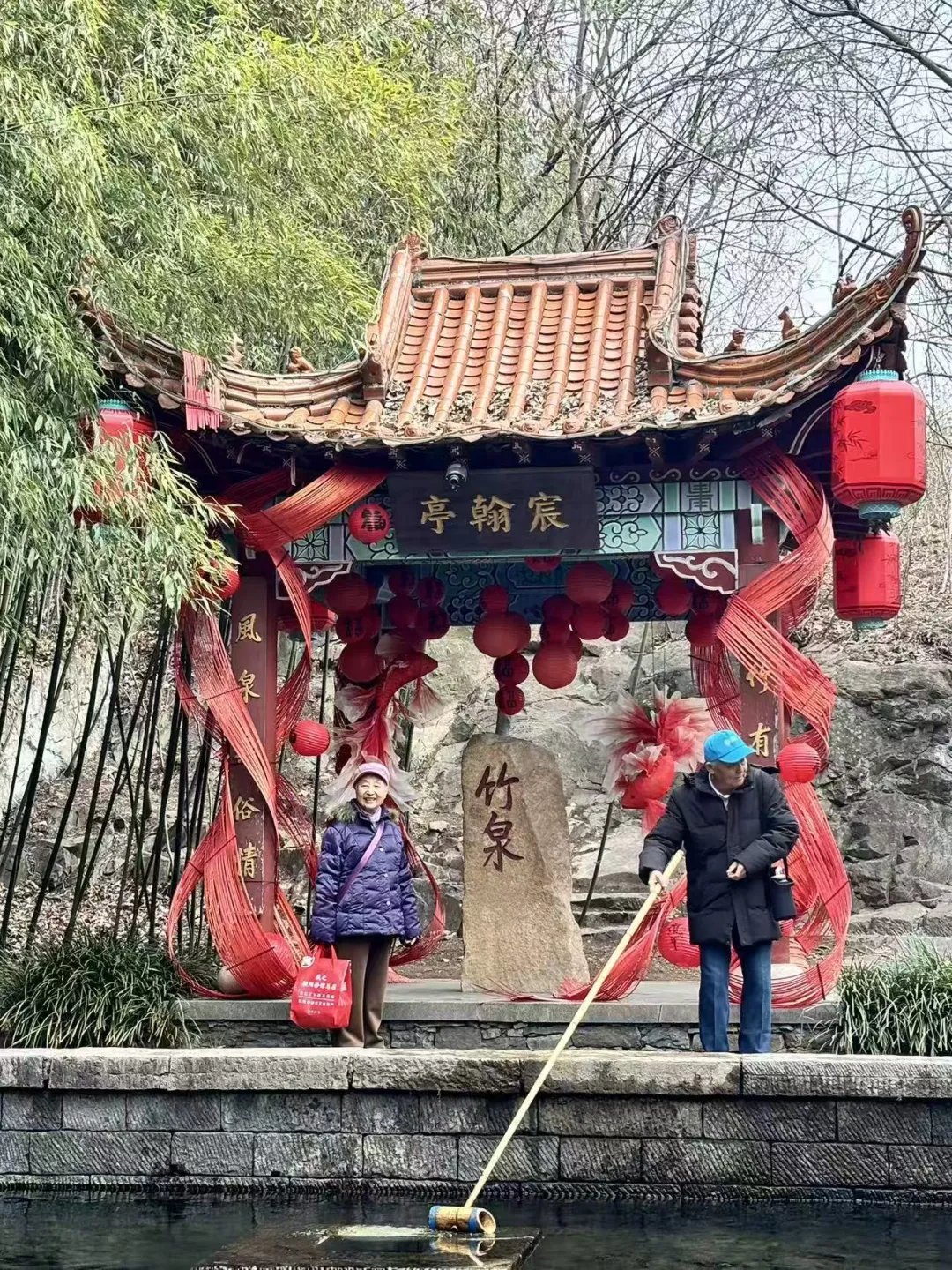 在导游的带领下,团队沿蜿蜒的石板路深入竹泉村。空气清新,负氧离子充沛。游客们驻足泉边,远眺群山环抱,竹林掩映的壮丽画卷。竹泉村的泉水清澈见底,竹影倒映其中,仿佛一幅流动的水墨画。