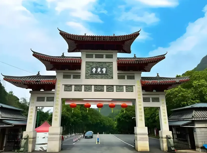 于指定地点集合前往世界客都·梅州(车程约3.5小时)。参观前往有着千年历史的【广东四大名刹之一·灵光寺】(游览时间60分钟)这里不仅有肃穆的殿宇,更有“菠萝顶引烟、瓦面无落叶、生死树相依”的天然奇观。漫步其间,檀香微拂,钟声隐约,仿佛时光也放缓了脚步,予人一片宁静的心安。(建议在生死树前合影,捕捉岁月与生命的对话。)