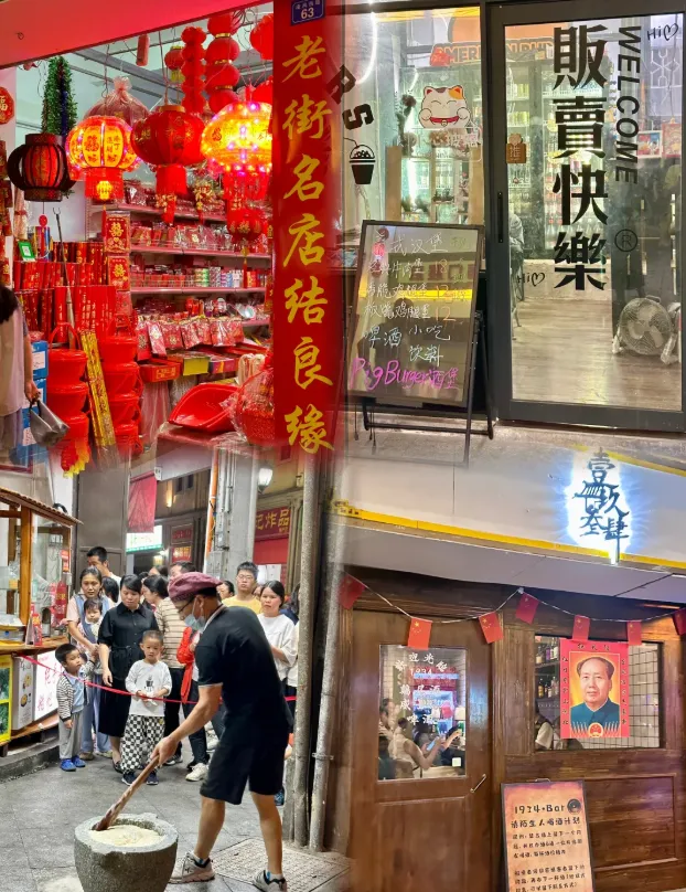 下午我们将自在漫游【“小香港”嘉应古城,晚餐于古城自理】你可以亲手体验 “打糍粑” ,感受糯米在木槌下变得绵软香甜的趣味;更可持一份《古城美食地图》,穿街走巷,去寻找一碗地道的腌面、一份软糯的笋粄、一杯清润的仙人粄。夜色中的古城,灯火温润,烟火升腾,正是品味客家生活味的绝佳时分。