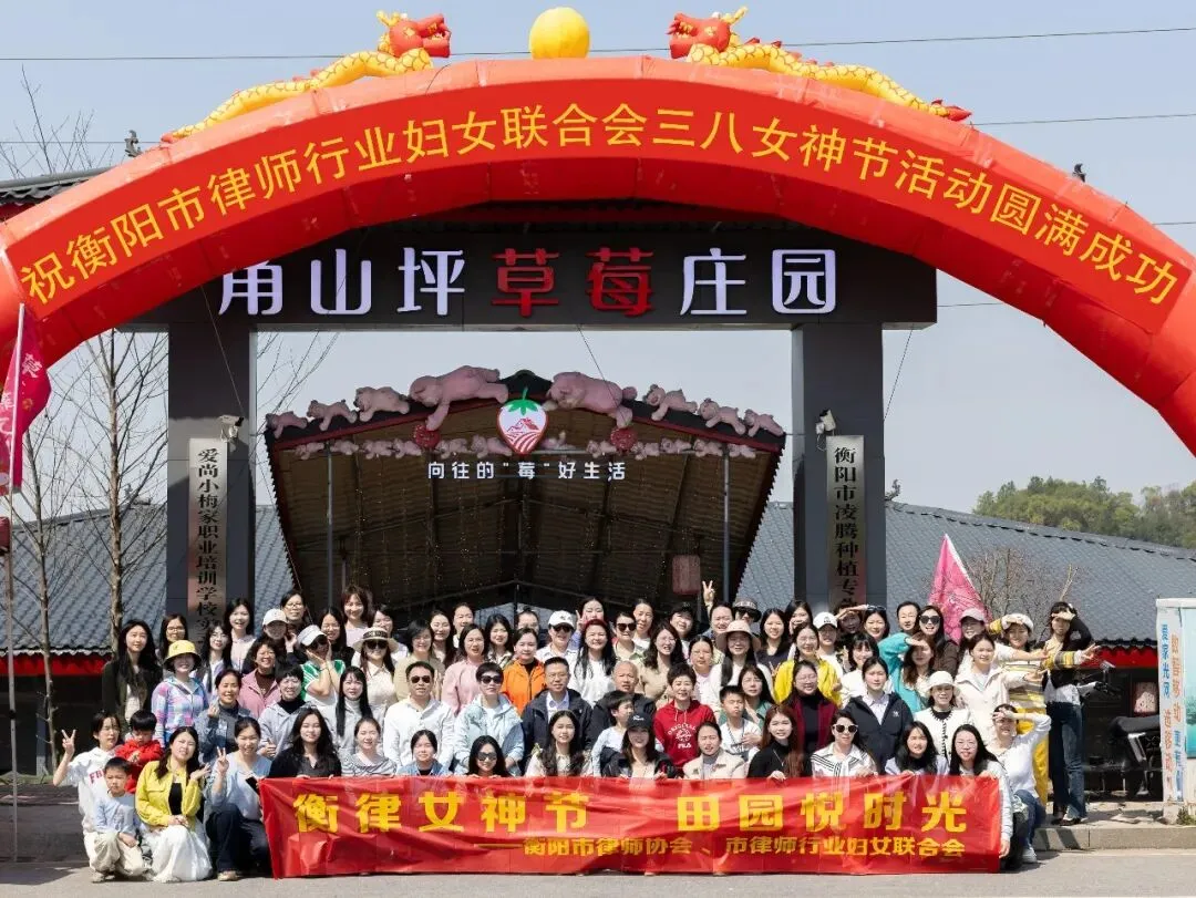 春风送暖,莓香满园。为庆祝第116个“三八”国际劳动妇女节,丰富衡阳市律师行业女性从业者的精神文化生活,3月14日,由衡阳市律师协会主办、市律师行业妇女联合会组织的“衡律女神节 田园悦时光”主题活动在角山坪草莓庄园举行,全市执业女律师、实习人员及行业女性工作人员齐聚一堂,共庆佳节。