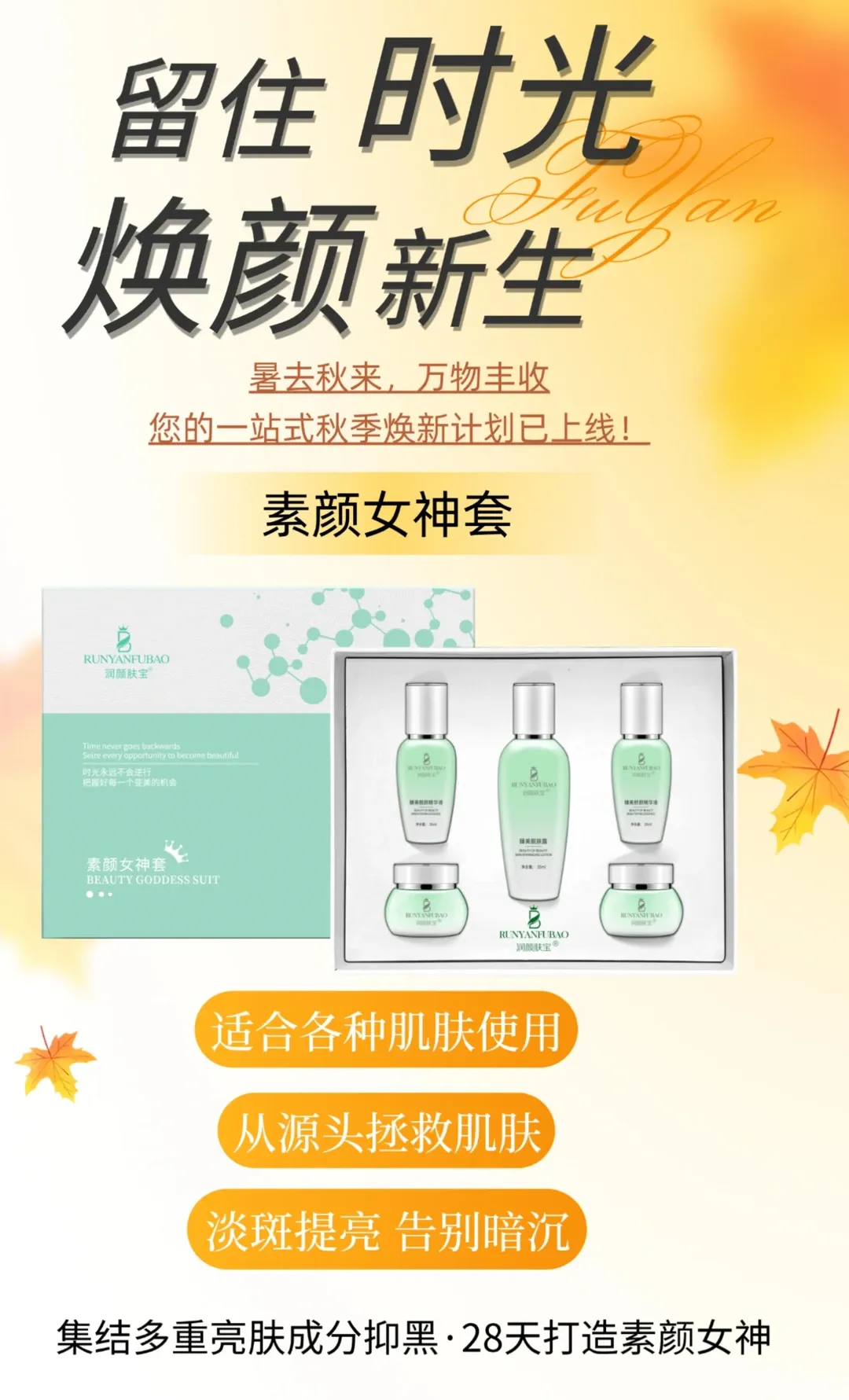 润颜肤宝素颜女神套,专为“黄气”肌肤定制。多重抗氧成分协同作用,中和自由基,代谢掉肌底的糖化产物和陈旧黄气。它不是表面假白,而是由内点亮,像给肌肤注入了新鲜氧气。连续使用,你会发现早上起床不再是满面油黄,而是透亮饱满的晨光肌。原来,祛除暗黄最好的办法,是让肌肤自己“亮”起来。
