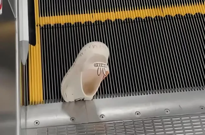 洞洞鞋、拖鞋等软底鞋类大多材质宽松柔软,受到外力极易发生变形,并且该类鞋的材质与扶梯围裙板发生接触时,会发生较大的摩擦力,很容易被卷入扶梯间隙造成足部挤压。因此,在穿着此类鞋乘坐扶梯时,请注意不要踩踏梯级黄线,双脚站立在同一梯级踏面的中间位置,避免将鞋子靠近扶梯侧面边缘或间隙处。