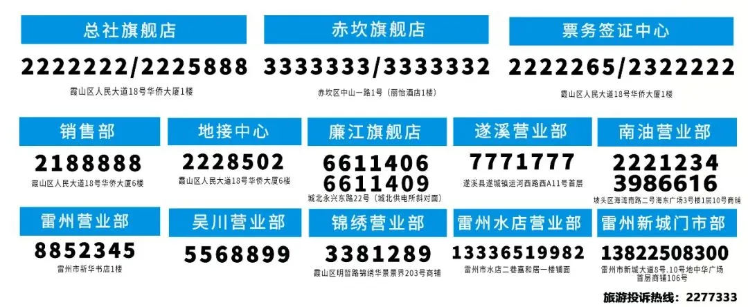 欢迎咨询湛江中旅各营业部。
