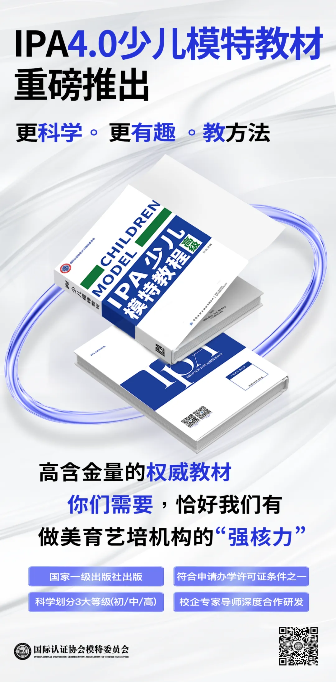 IPA模特委员响应国家教育的新方向,组织多名IPA国际认证少儿模特导师,倾力编著IPA4.0少儿模特教材,并通过通过中国纺织出版社出版。