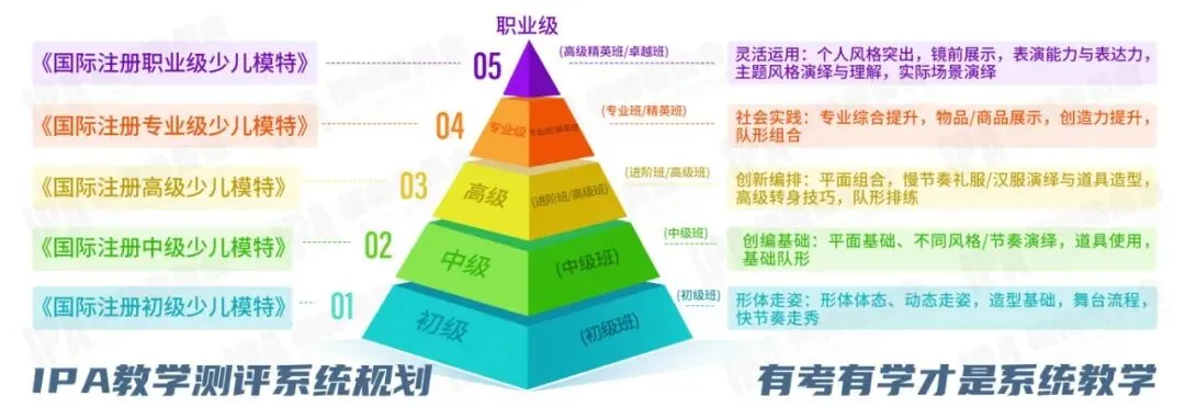 IPA少儿模特专业能力测评已正式升级为4.0体系,构建了一个从基础到综合,层层递进、逐步深入的全新评估框架,为机构学员建立更精准的阶段性学习成果检验,打造一体化少儿模特成长系统。