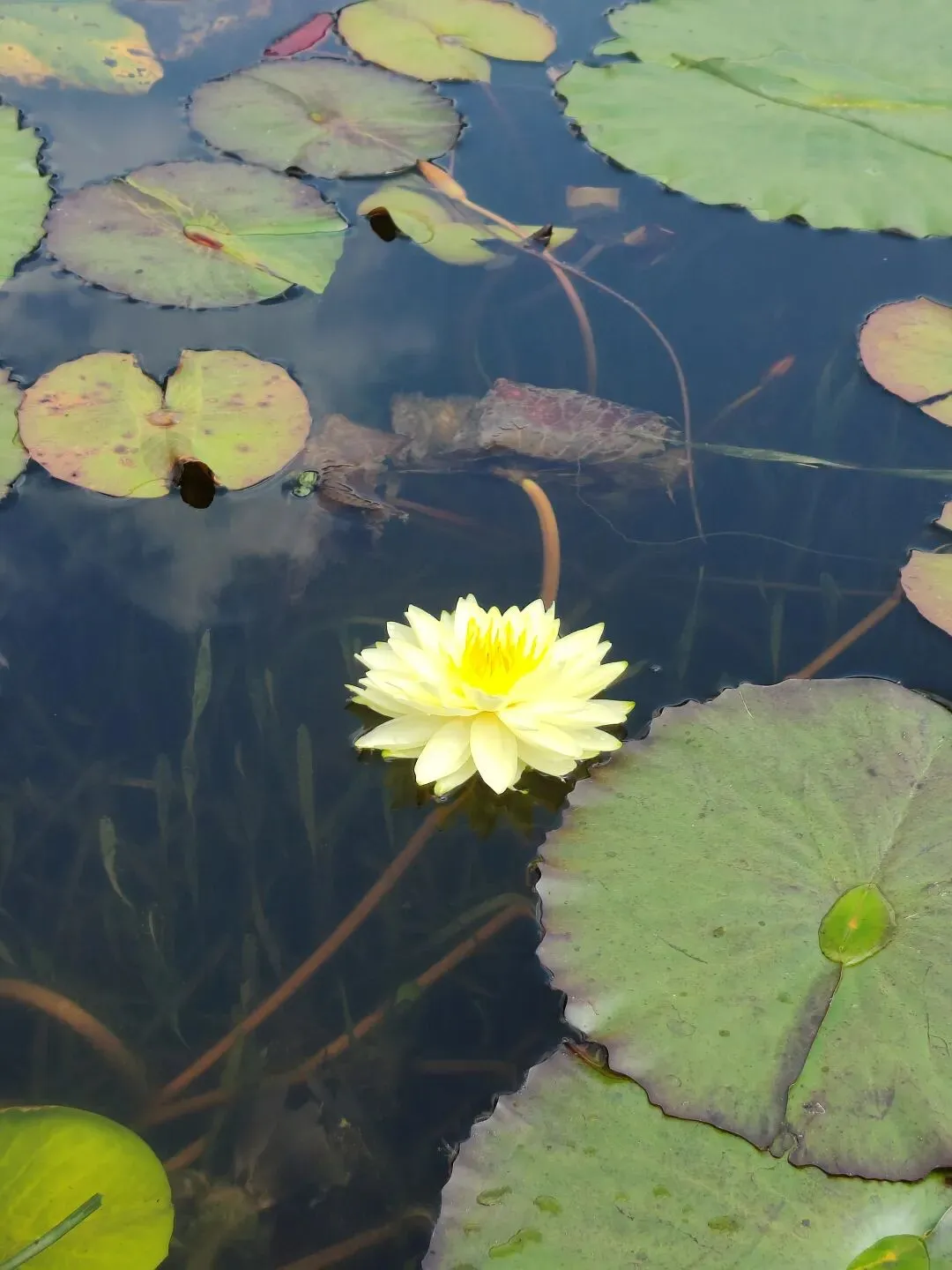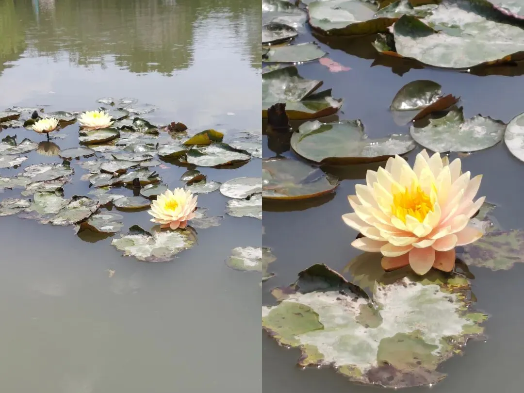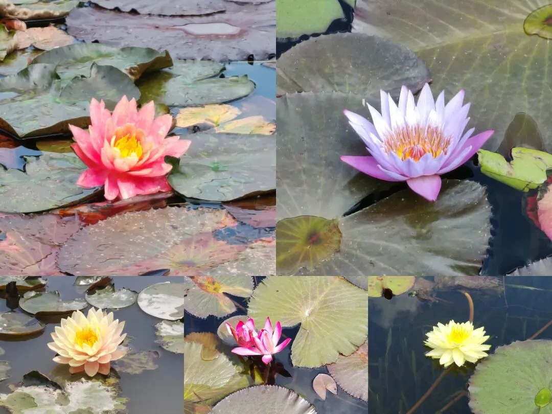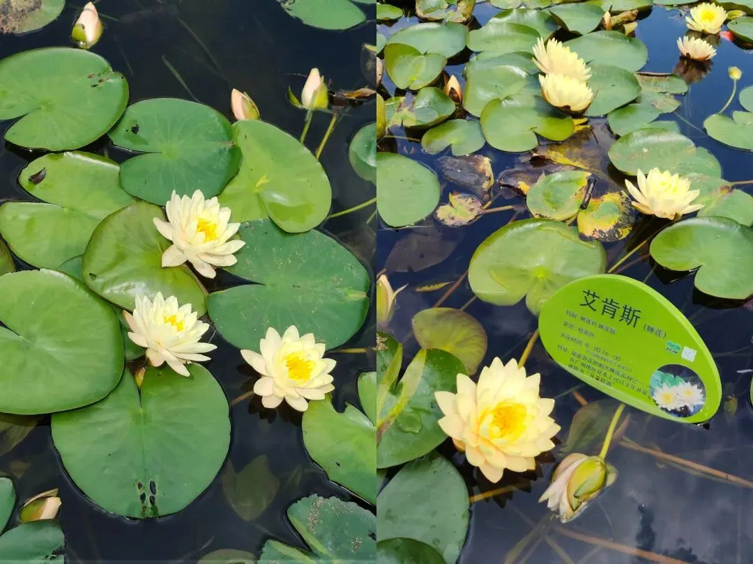 还有一些没介绍名字的品种,也有着独特的美,这一朵朵柔和的奶油黄色的睡莲,小巧精致,可能叫“海尔芙拉”