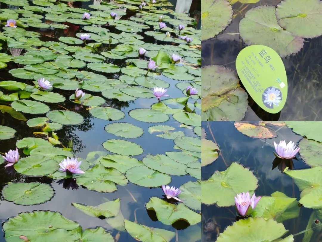 蓝鸟,蓝紫色,大型热带睡莲品种,在广州可全年开花,花多且在线时间长,早8开到晚5,我们昨天看到最多的也是蓝鸟,富丽堂皇,非常好看。