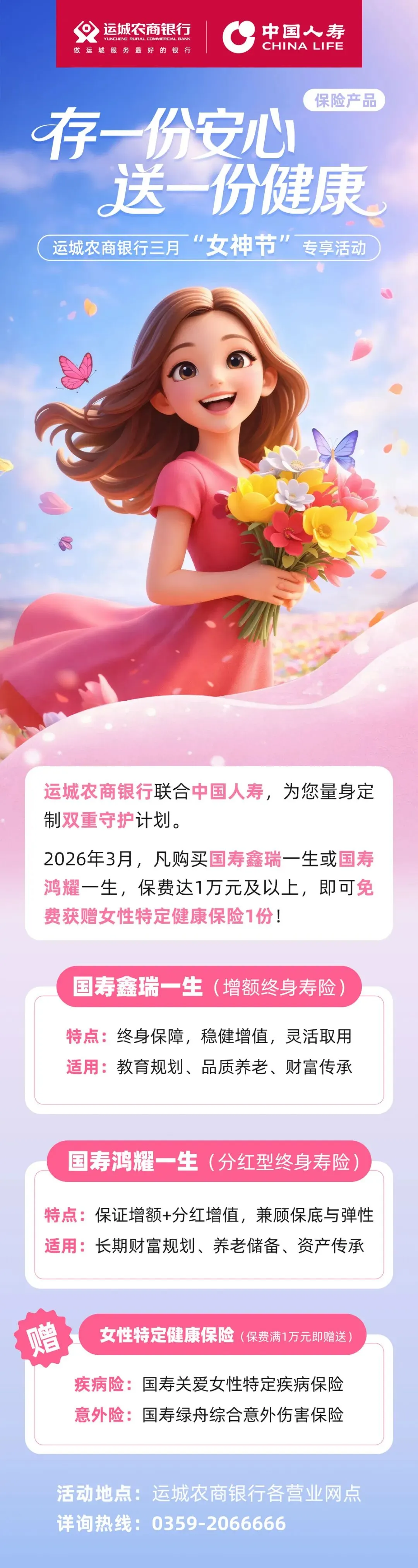 当前位置:首页>美女资讯>【财富管理】三月女神节专享!运城农商银行&中国人寿,为您定制安心+健康双重守护计划