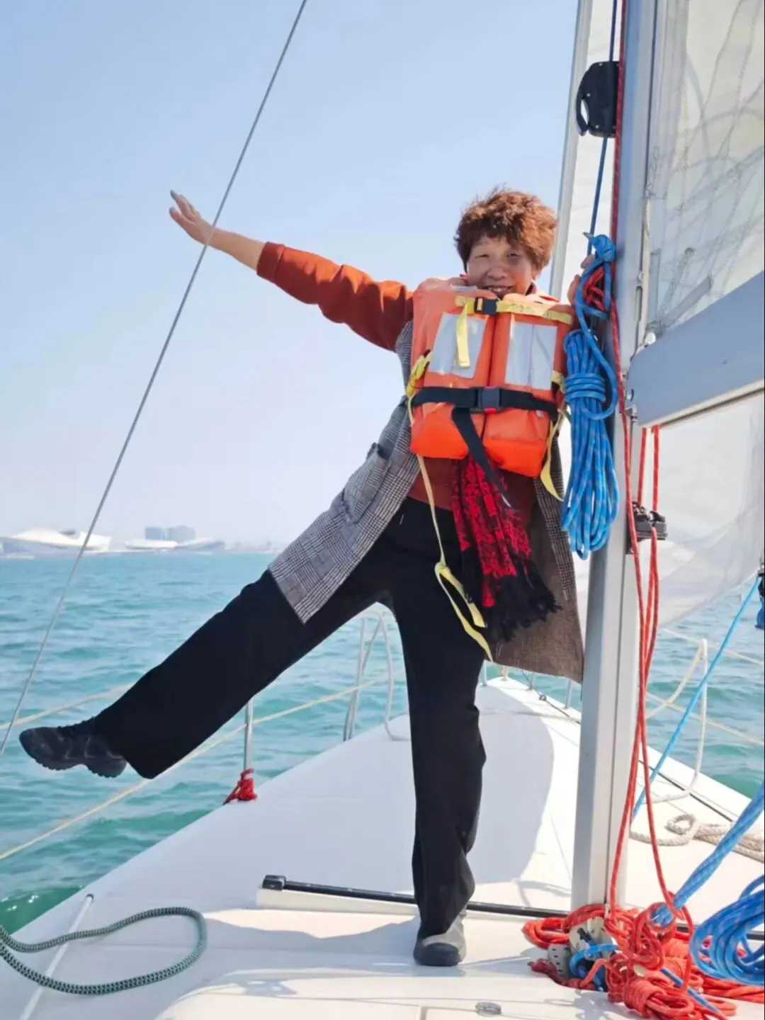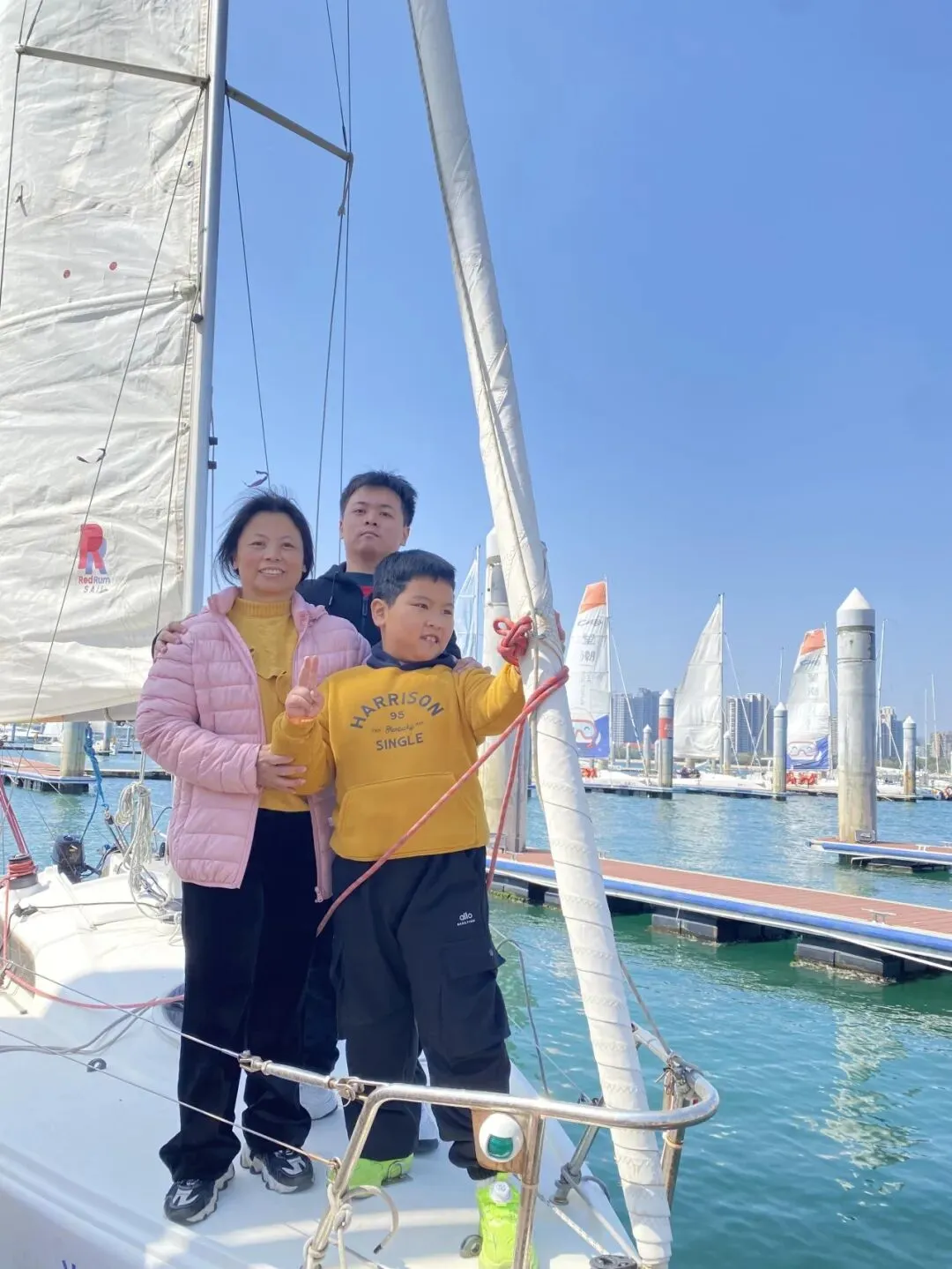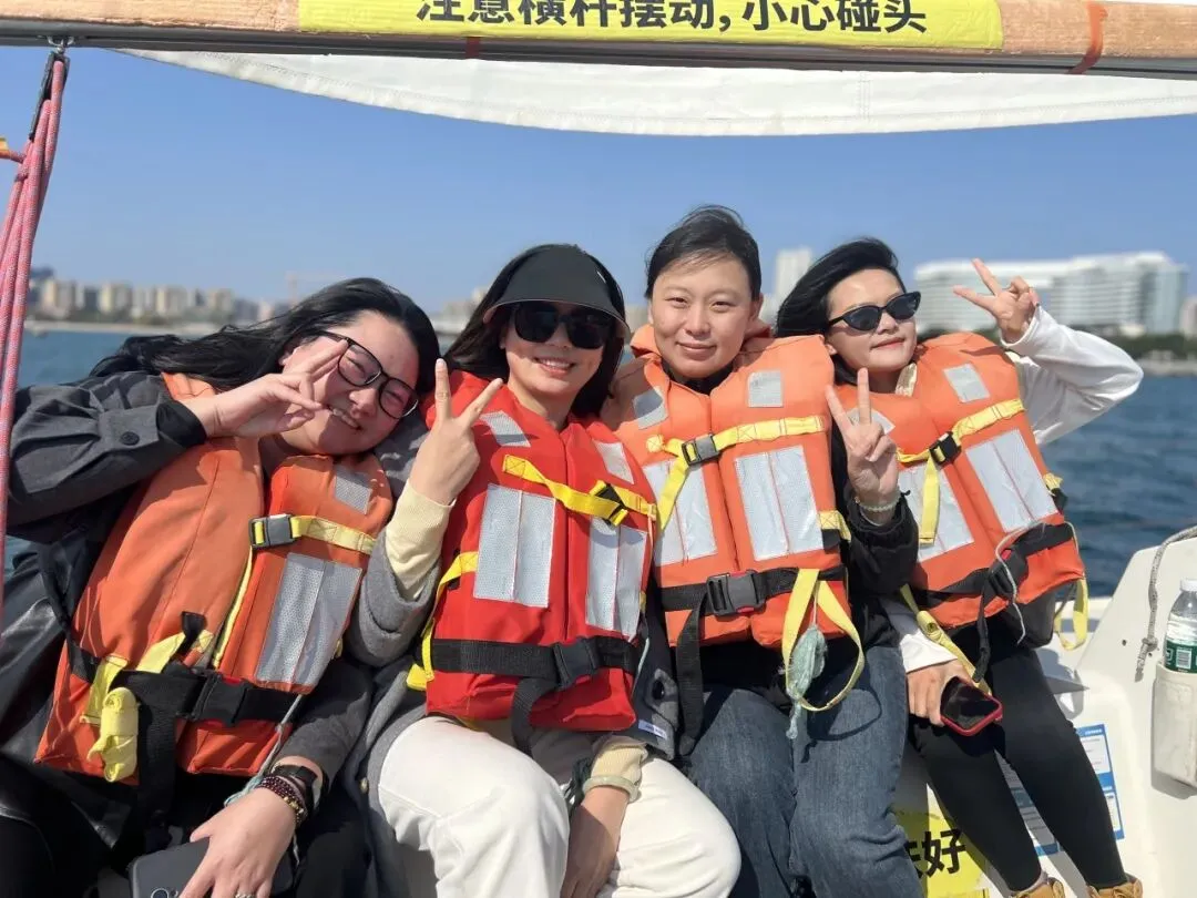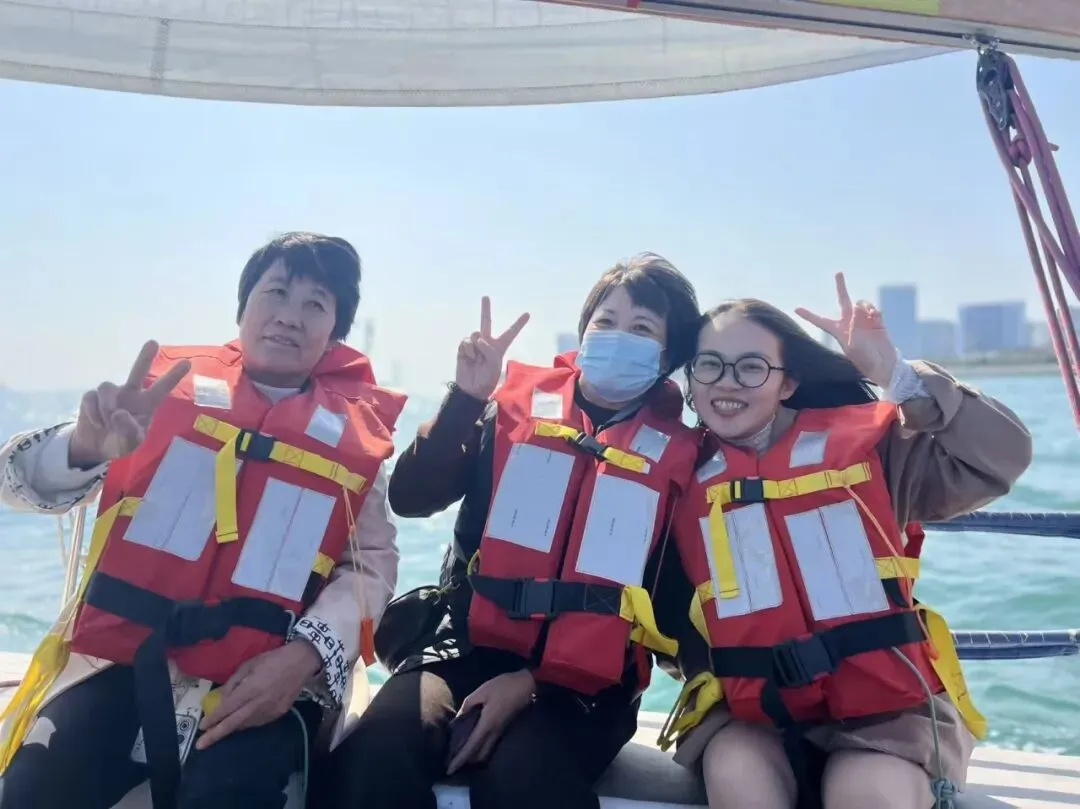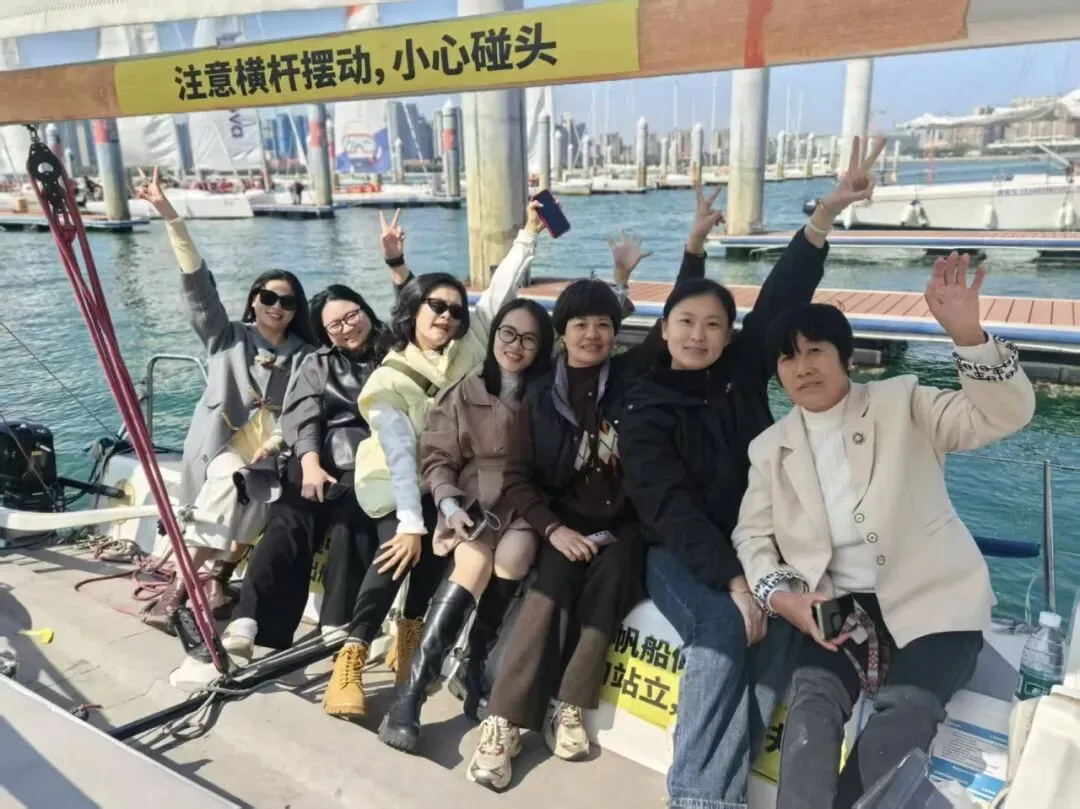 上午,我们抵达了美丽的五缘湾。在这片被誉为“帆船港湾”的海域,平日里在教室里轻声细语、无微不至的老师们,此刻化身成了勇敢的“航海家”。帆船随风倾斜,激起阵阵浪花,引来老师们的一阵阵惊呼与欢笑