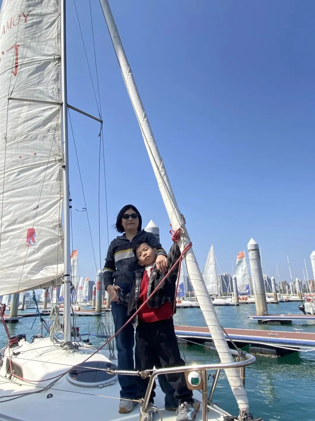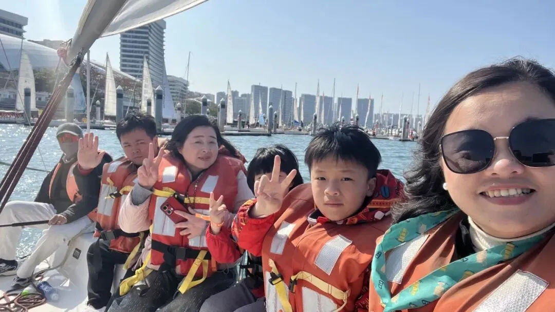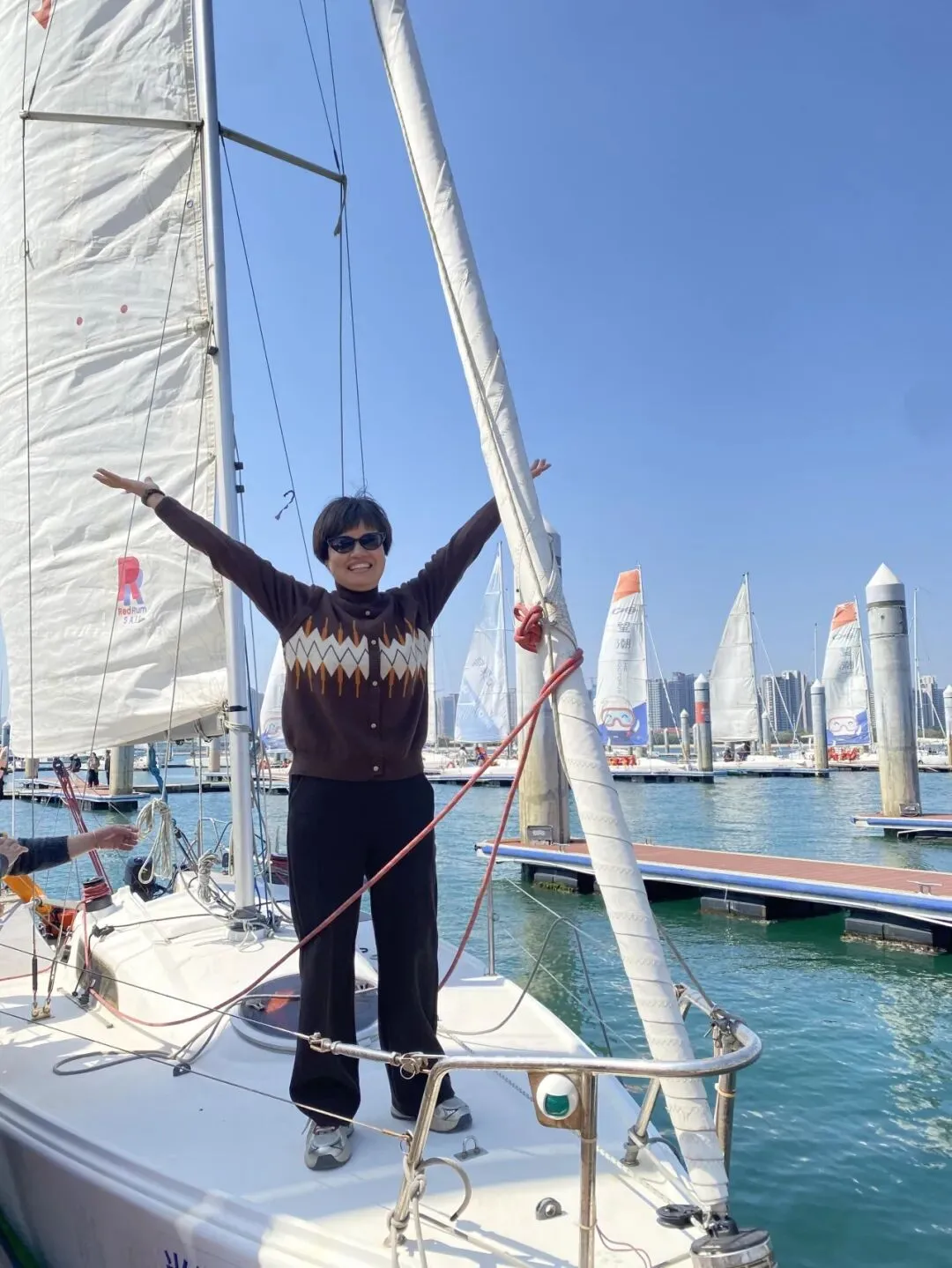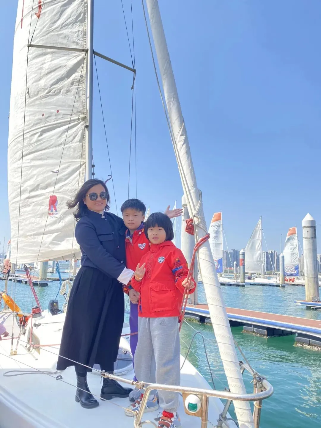 上午,我们抵达了美丽的五缘湾。在这片被誉为“帆船港湾”的海域,平日里在教室里轻声细语、无微不至的老师们,此刻化身成了勇敢的“航海家”。帆船随风倾斜,激起阵阵浪花,引来老师们的一阵阵惊呼与欢笑