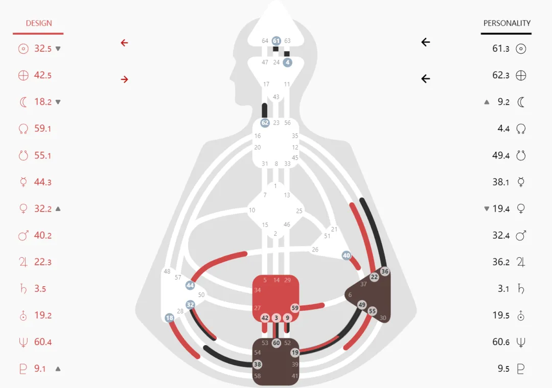 我还发现一个关键的信息,他的能量重心全部落在下半部分,走起秀来非常的稳当,人往T台上一站,气场全开,而且情绪中心22号闸门赋予他极致的优雅,哪怕赤脚披毯,也能走出精致从容的感觉。