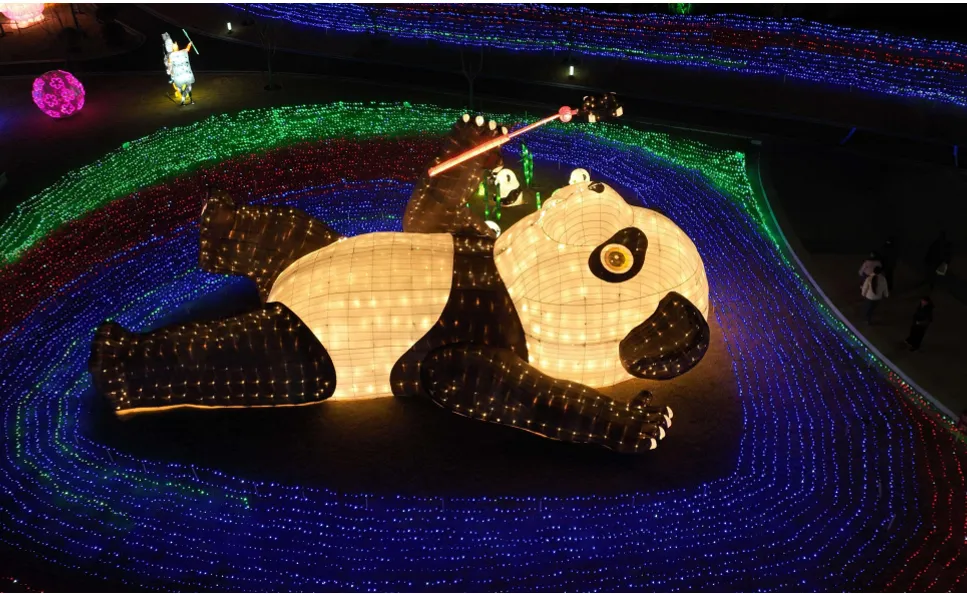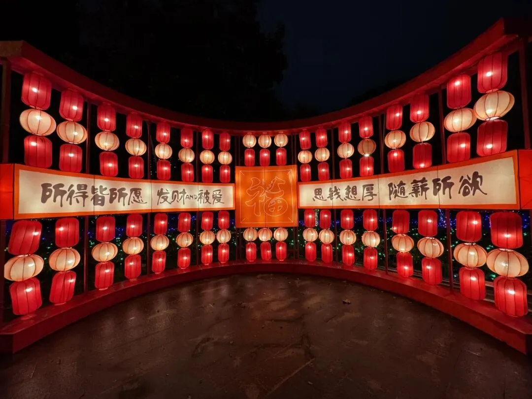 本区域以中华传统祥瑞神兽为核心,通过精湛的动态灯艺手法,让龙、狮、麒麟等瑞兽“活”起来,与灯笼、福字、爆竹等新春元素热闹结合。