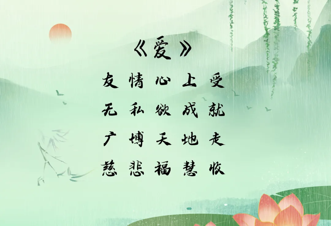 “友情心上受,无私欲成就,广播天地走,慈悲福慧收。”