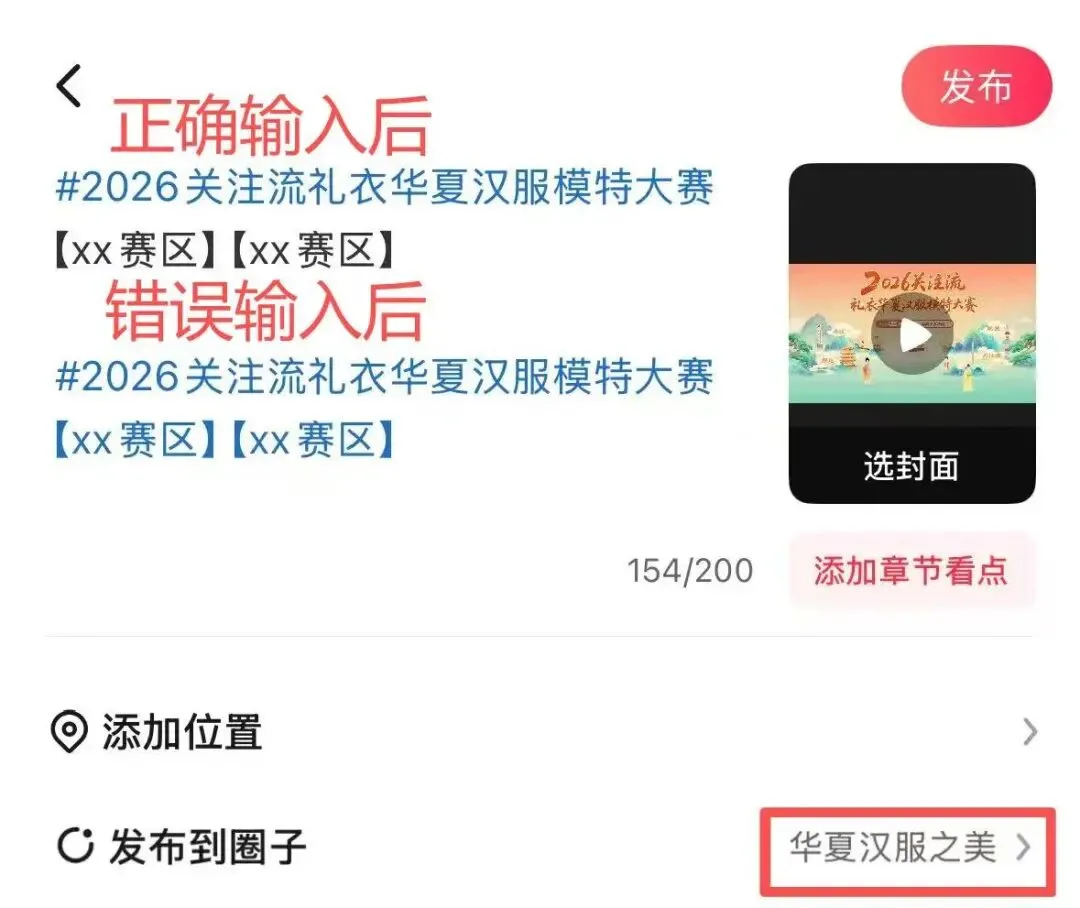 2.在圈子中带话题 #2026关注流礼衣华夏汉服模特大赛 上传 16 秒以上汉服相关视频,标题加关键字【华中赛区】【郑州赛区】。