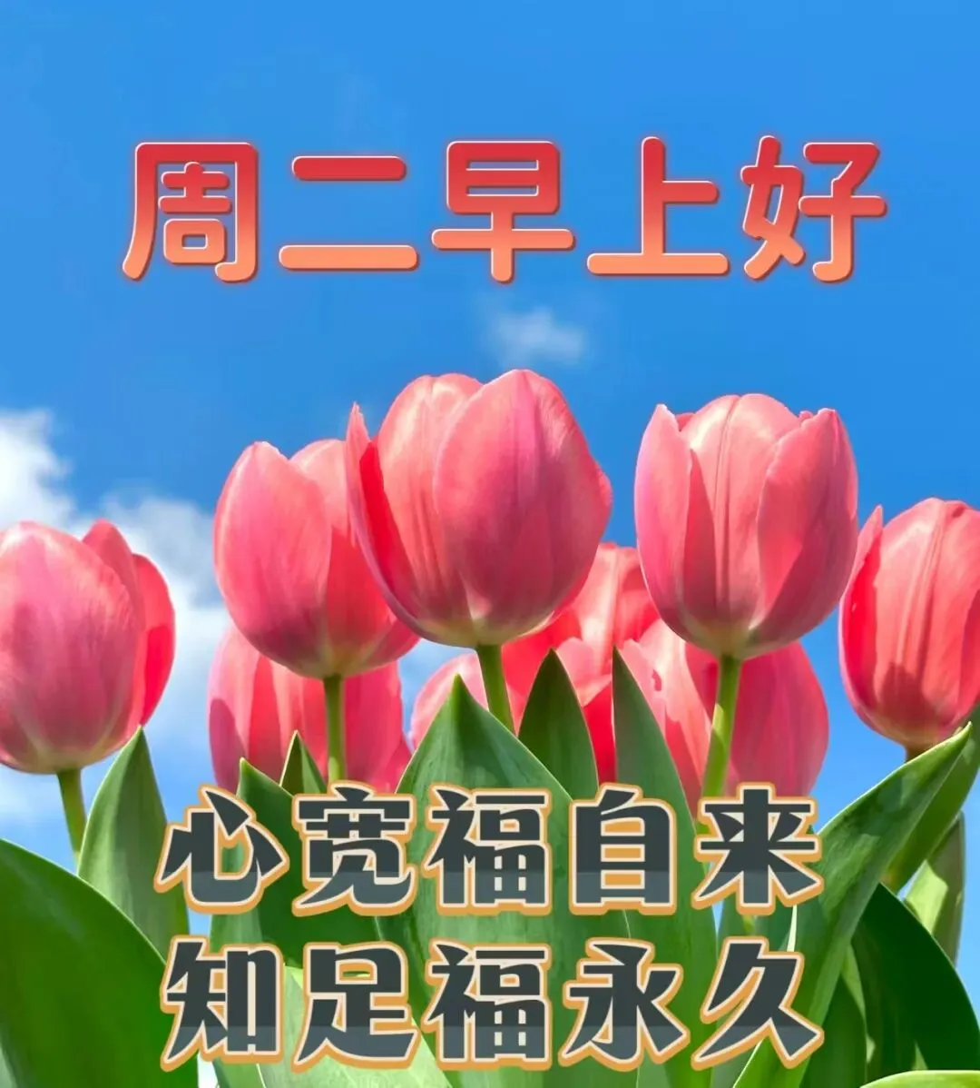 周二到了,一份大礼送上门前,让你身体健康,事业顺利,家庭和睦,幸福安康,这就是我的。祝福,愿你周二快乐!早上好!