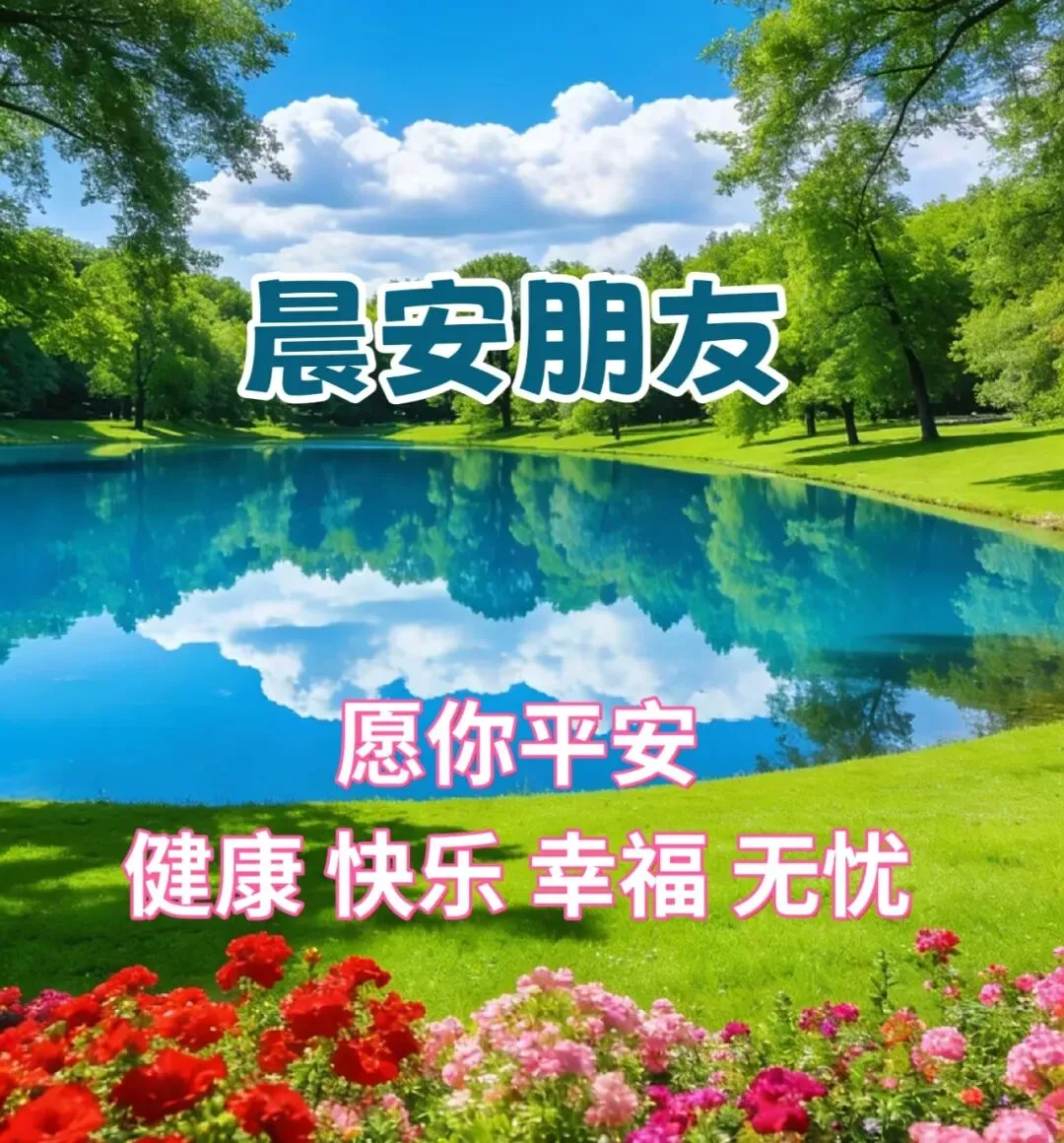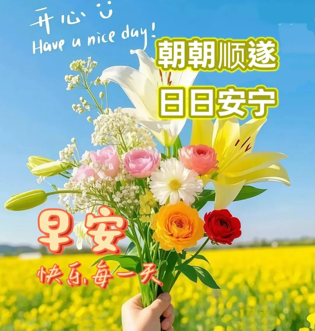晴天是我的笑脸,鲜花是我的礼物,雨水是我的心语,每当你抬头看天,蓝天里洁白的云,是我不变的祝福,记住早安快乐!早安吉祥!